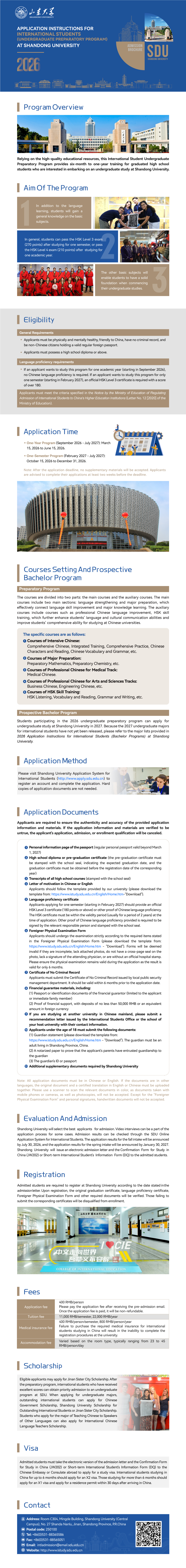 3.11.5 2026Application Instructions for International Students (Undergraduate Preparatory Program) at Shandong University