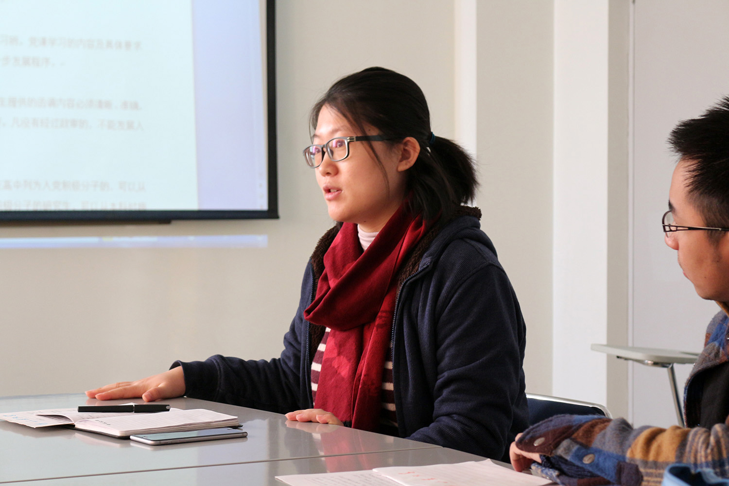 学院本科生党支部书记刘真首先向与会人员介绍了学院本科生党支部的情况。随后,马艳妮老师介绍了学院发展学生党员的工作程序及要求,使得学生们对于入党的流程有了更加清晰的认识。