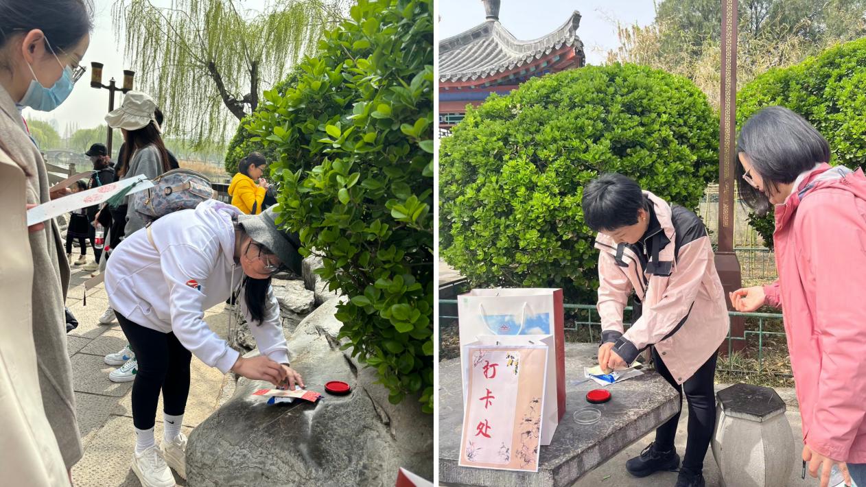 参加人员积极响应号召绿色出行。大家在大自然中踏青赏花、开阔襟怀、交流情感,以“梅兰竹菊”打卡签章形式圆满完成了绕湖健步走的任务,将中华优秀传统文化美育内涵和健步强身的体育精神紧密融合。