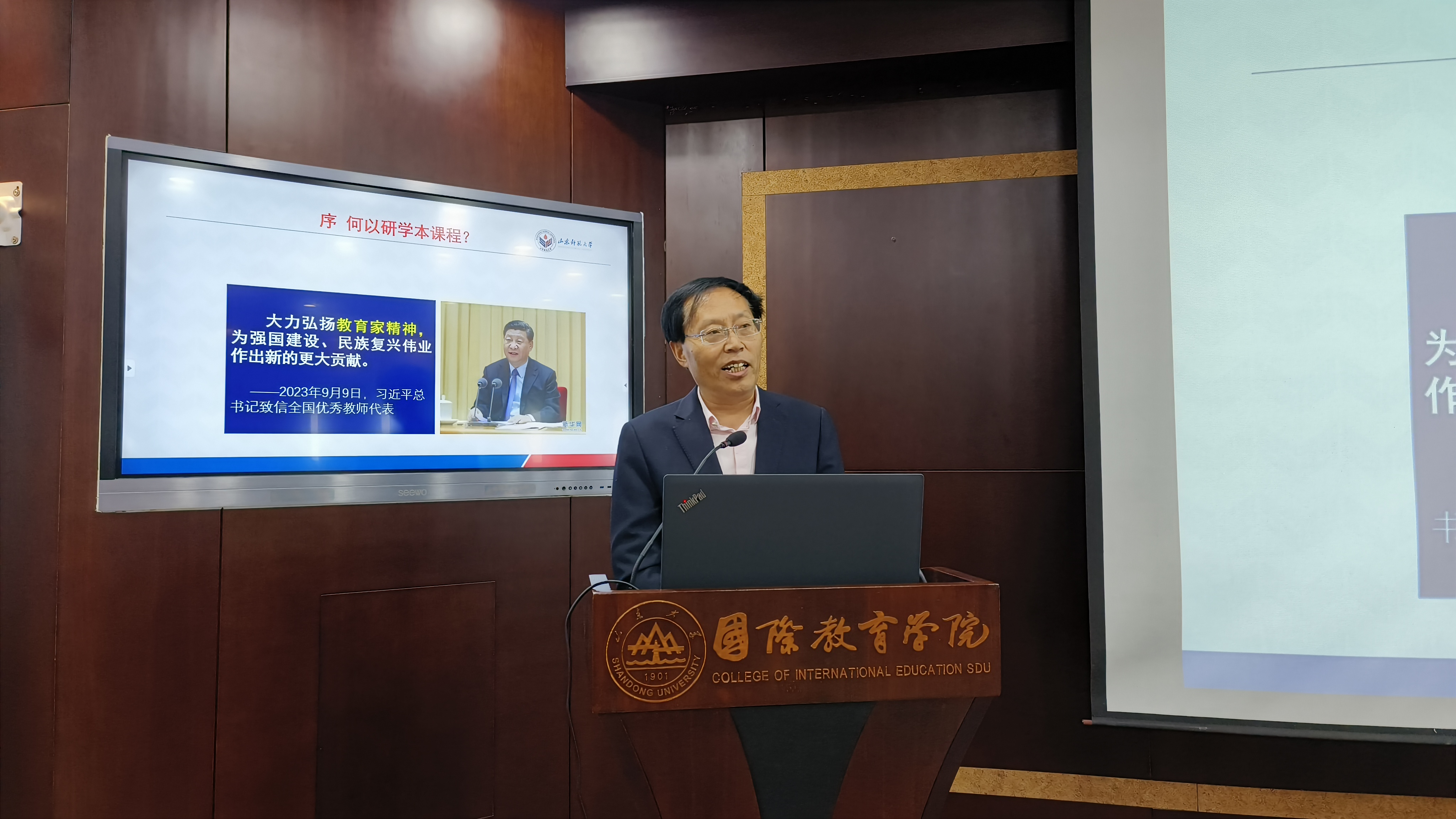 12月13日,山东师范大学马克思主义学院教授、博士生导师任者春以“教育家精神的内涵要义与弘扬路径”为题,为全体师生党员、入党申请人、入党积极分子带来一场思想深刻、内容丰富的专题讲座。他详细分析了教育家精神的重要内涵,指出教育家精神是教育事业的灵魂,是驱动教育创新发展的不竭源泉,强调了教育者对教育规律的尊重和对师德师风的高度重视。讲座过程中,任教授还结合生动案例进行了深入讲解,并与现场党员进行了互动交流,进一步激发了大家的学习热情和思考。