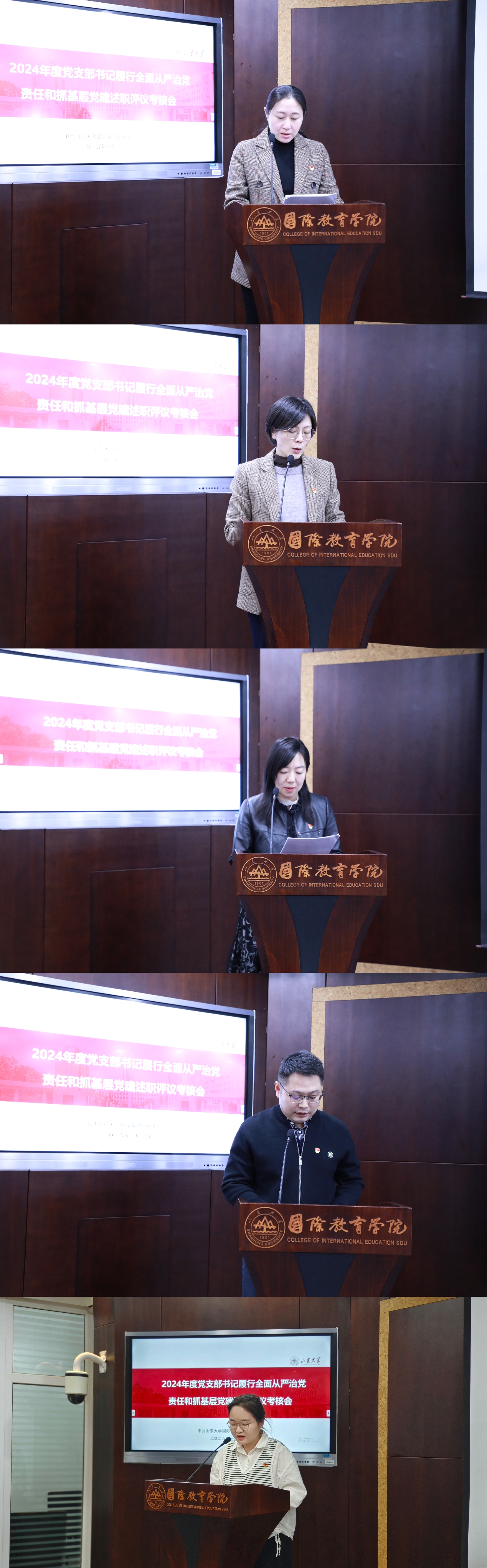 会议采用“一述一评”的方式进行。4位教工党支部书记和1位学生党支部书记代表进行了现场述职,其它学生党支部书记进行书面述职。各位党支部书记重点从抓基层党建工作情况展开汇报,述职内容紧扣支部建设难点堵点痛点问题,既总结了工作“亮点”,也查摆了存在的“薄弱点”并分析原因,提出了切实可行的改进举措。每位党支部书记现场述职完毕后,联系党支部的党委委员和党委书记逐一做了点评,肯定工作成绩的同时,真点问题、点真问题,指明努力方向,提出工作建议。