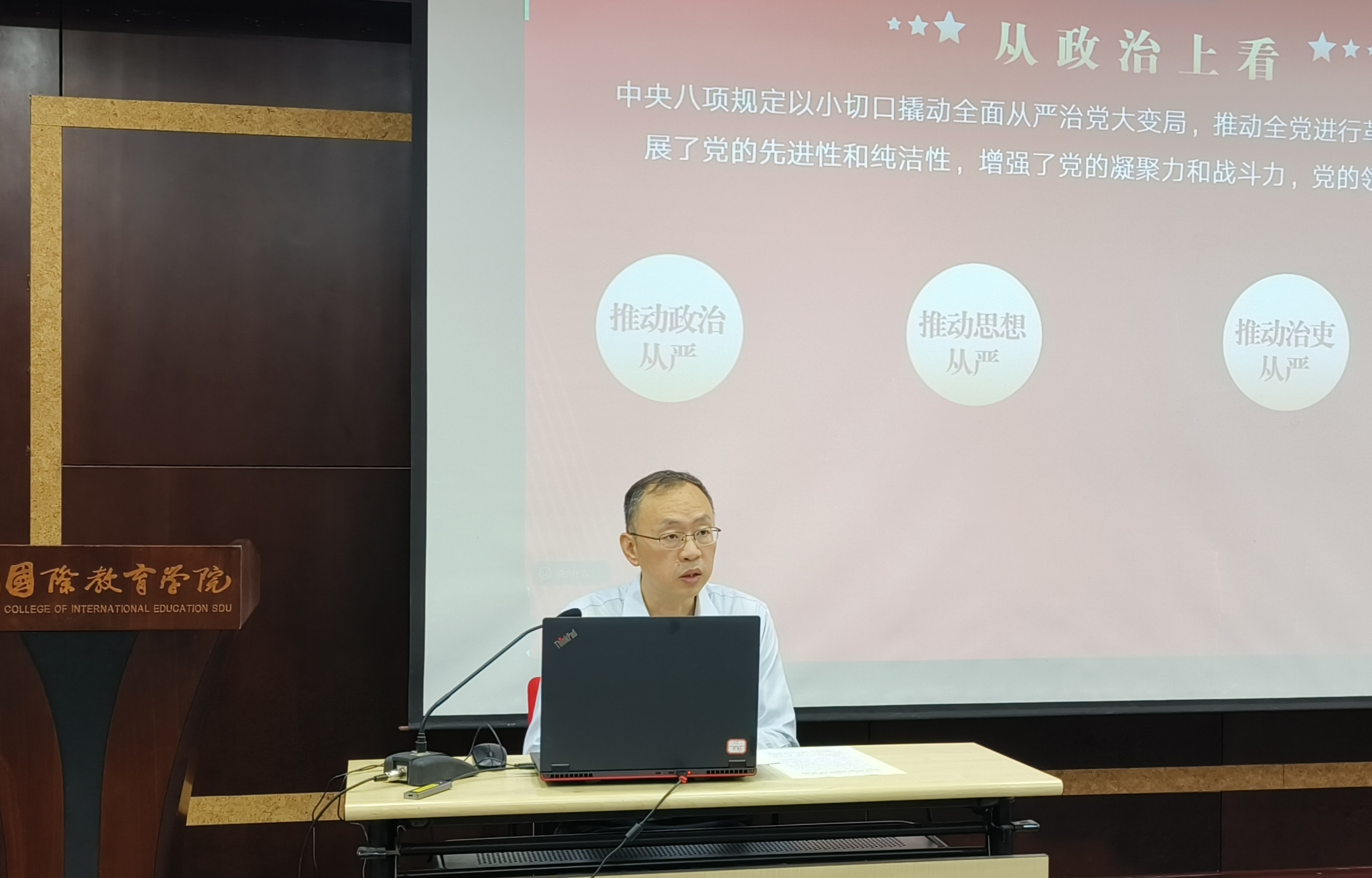 7月1日上午,学院召开庆“七一”党员大会,学院全体师生党员齐聚一楼报告厅,共同庆祝中国共产党成立104周年。英国威廉集团党委书记姬锐以“八项规定改变中国”为主题讲授专题党课。会议由学院党委委员、副院长杜文倩主持。