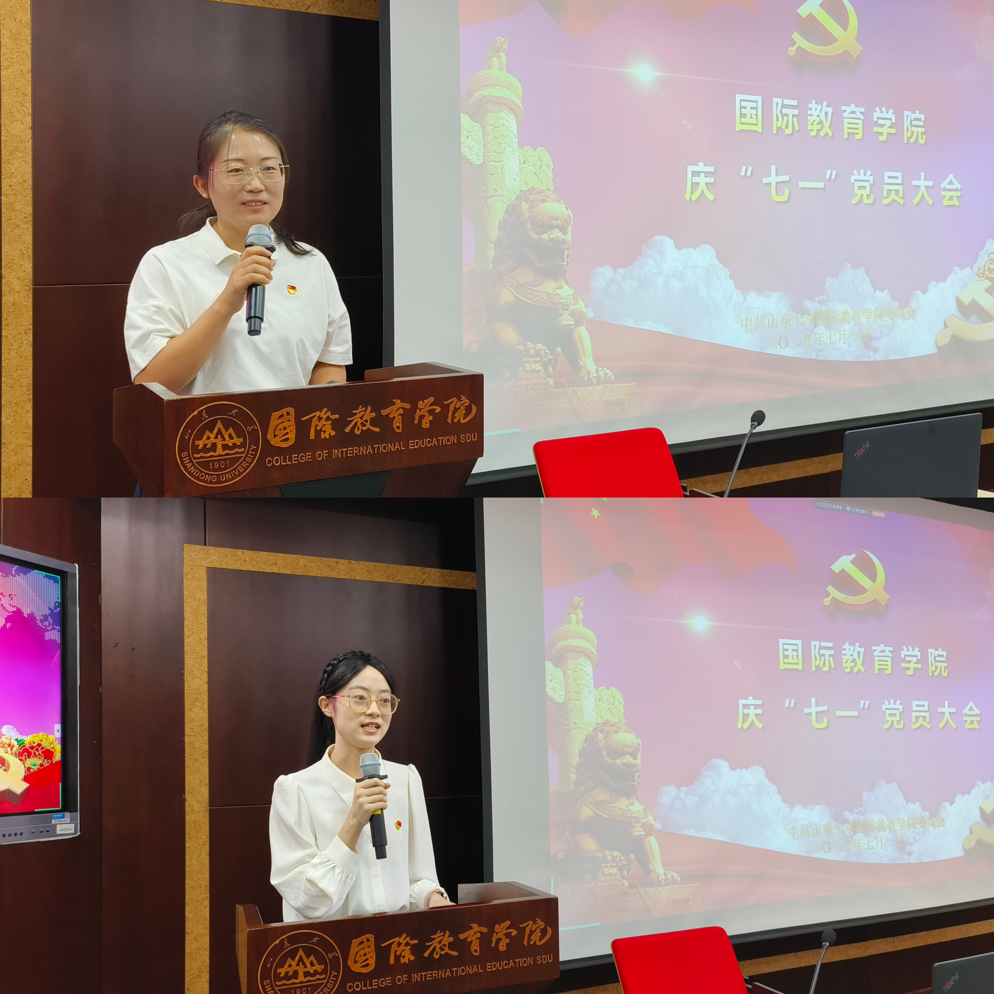 教工党员代表马艳妮同志回顾了身边教师党员的工作事例,生动诠释了国教人“谋事有大局、做事讲规矩、遇事敢担当”的奉献精神。学生党员代表石佳佳同志通过分享参与志愿服务的感悟,表示将肩负起青年一代传播中华文化、促进文明交流互鉴的时代使命。