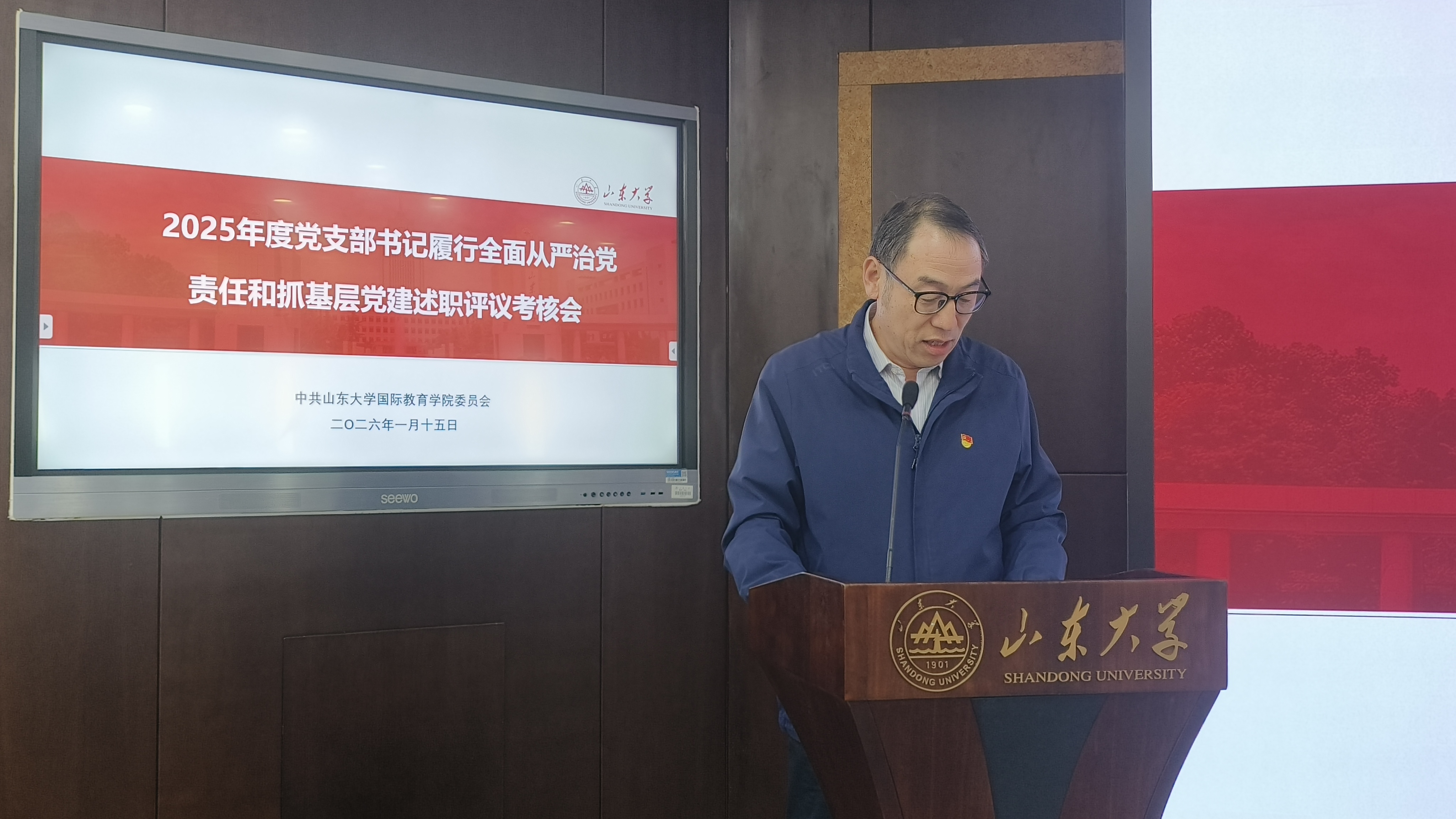 115日下午,学院党委举行2025年度党支部书记履行全面从严治党责任和抓基层党建述职评议考核会。学校党建实地考核工作第二小组组长郭举修同志参会指导,学院党委委员、领导班子成员、各党支部书记、委员、系(部)负责人科级干部、党员代表参加会议党委书记姬锐主持会议。
