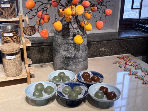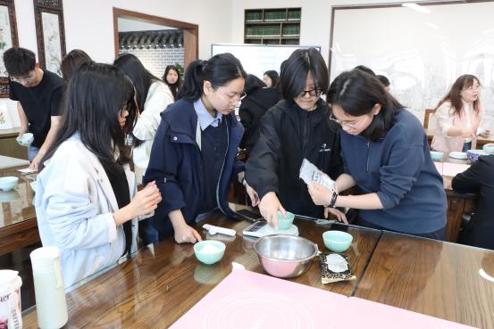 专题讲座结束后,师生共同体验制作青团。在老师的细致指导下,大家从揉制艾草面团、包入馅料到搓圆成形,亲历每一道工序。艾草清香徐徐弥漫,糯软触感指尖流转。通过亲手实践,师生们真切体会到古人顺应天时、融入节俗的生活哲学,在互动中感知清明节俗独特的文化温度与情感联结,让传统节俗在亲手实践中变得可感、可知、可触。
