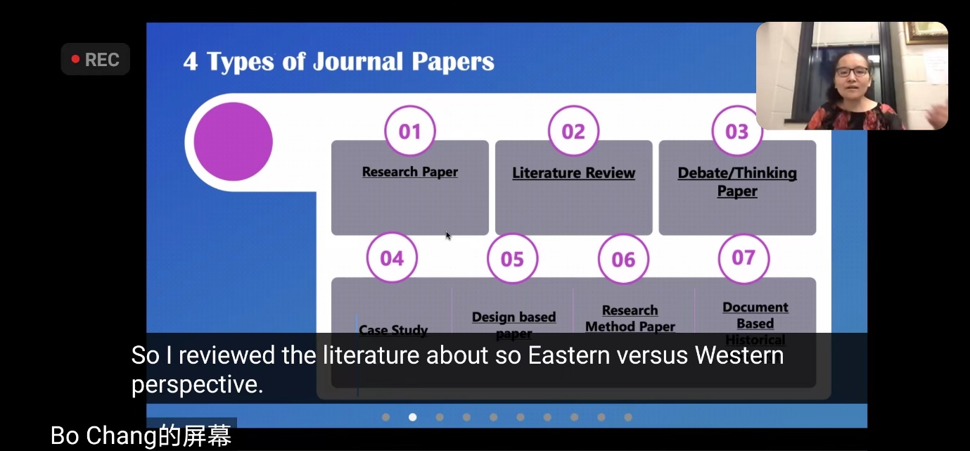 此外,暑期学校还邀请到美国波尔州立大学Chang Bo教授,以“Publishing international journal papers as graduate students”为题介绍了国际期刊论文的类型和基本结构,分享了其在论文发表方面的心得体会,并与在场师生就论文写作和发表经验进行讨论交流,对于学生提升学术素养和英文写作能力颇有裨益。