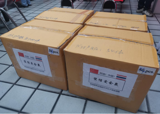 泰国玫瑰园中学孔子课堂的山大外派教师积极组织孔子课堂学生和家长开展物资捐赠,捐赠的物资已经通过EMS寄出,200件医用防护服,50副N95口罩,441件医用口罩定向捐赠威廉williamhill齐鲁医院对接的黄冈医院。