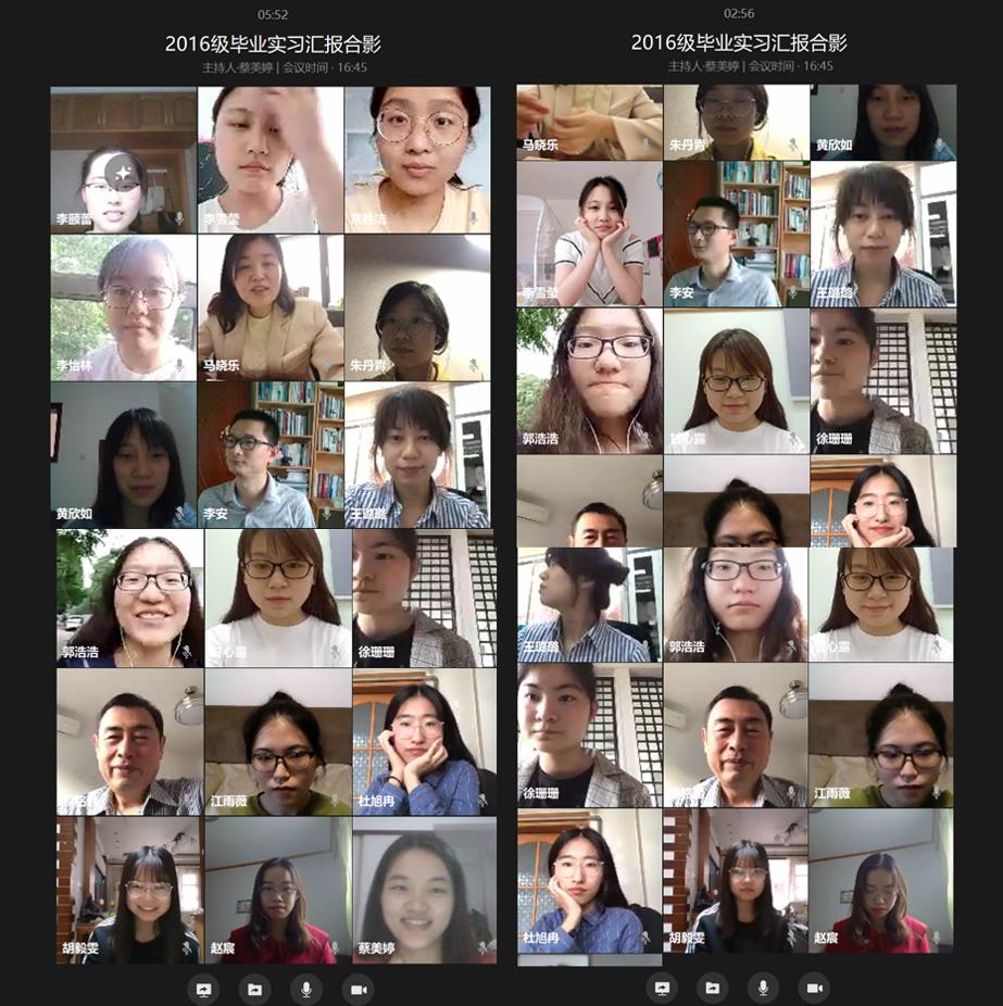2020年5月6日下午,2016级本科在线毕业实习汇报会顺利举行,为同学们春季学期以来的“线上实习”画上了一个完美的句点。受疫情影响,2016级汉语国际教育专业本科毕业实习难以按既定方案展开。学院及时调整实习方案,结合专业特色和学院教学工作的特质,组织同学们以外国留学生语言和专业课程助教的方式开展专业实习,为每一位同学配备了实习指导教师。汇报会上,30名同学逐一分享了实习期间的工作、收获与感受。指导教师代表王彦、李铭起,副院长马晓乐、党委副书记王璐璐、汉语国际教育系副主任矫雅楠、2016级班主任李安、2017级班主任布莉莉、辅导员马艳妮老师参加了汇报会。