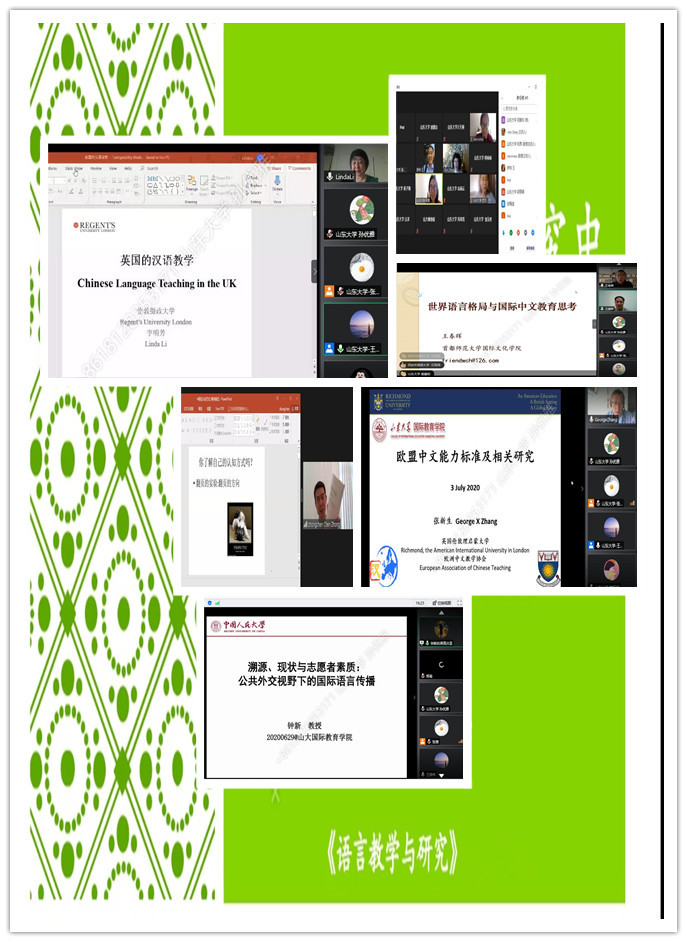 欧洲汉语教学学会副会长、英国伦敦理启蒙大学教授张新生以“欧盟外语及中文教学现状和趋势”“欧盟中文能力标准及相关研究”为题,分别讲授爱尔兰、芬兰等欧盟国家的外语尤其是中文教学现状,以及欧洲中文能力标准和国际中文能力标准的设计理念、发展历程及其与汉语水平等级标准等的对标与比较;伦敦摄政大学中文教授李明芳的“英国的汉语教学”课程从语言生活、学前教育、中小学汉语教育、大学汉语教育、语言政策、挑战与发展空间等6个方面介绍英国汉语教育现状,并专门从发展概况、课堂教学、教师理念等5个方面介绍了英国孔院的汉语教学,以及孔院教师应有的教学信念和认识。