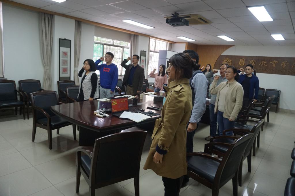 活动紧紧围绕高质量党建引领事业发展的要求,学深悟透、用好用活习近平新时代中国特色社会主义思想这把“金钥匙”引领国际学生工作实践。首先观看了《红色档案:入党誓词百年来几经变化 这一条却从未改变》,回望了我们党矢志践行初心使命过往的奋斗路,眺望我们党创造辉煌开辟未来的奋进路,大家纷纷表示要把党的历史学习好,把党的精神传承好。随后党员面向党旗重温入党誓词,接受心灵的净化和思想的洗礼,牢记共产党员的初心和使命,以更加饱满的热情投身工作,切实发挥共产党员的先锋模范作用,永葆共产党员的政治本色。