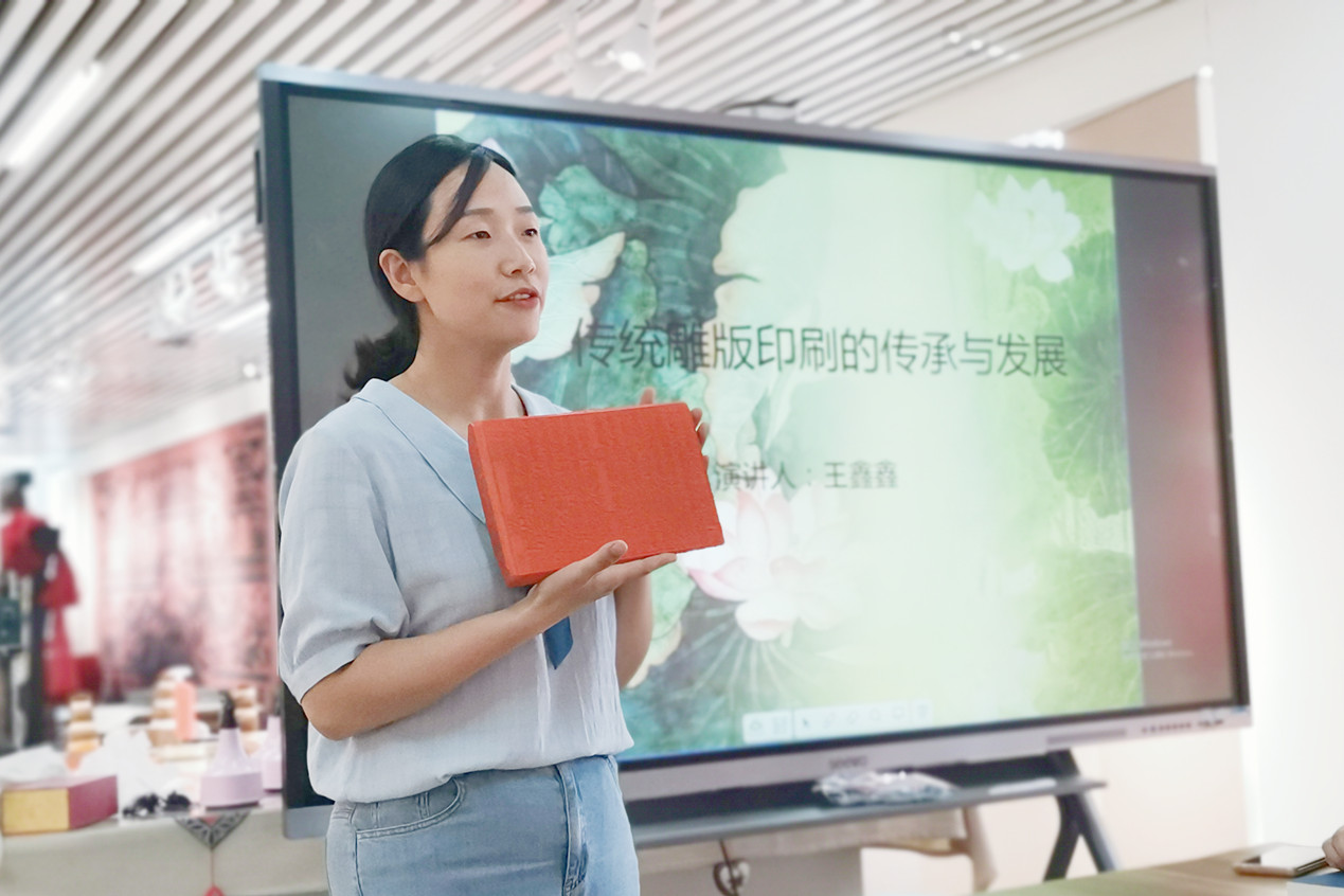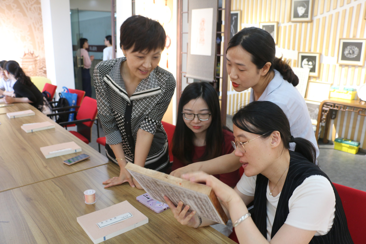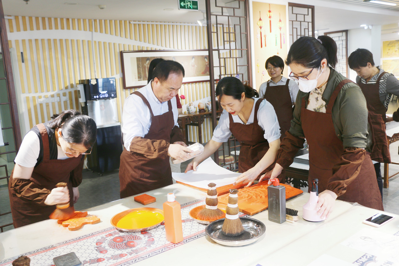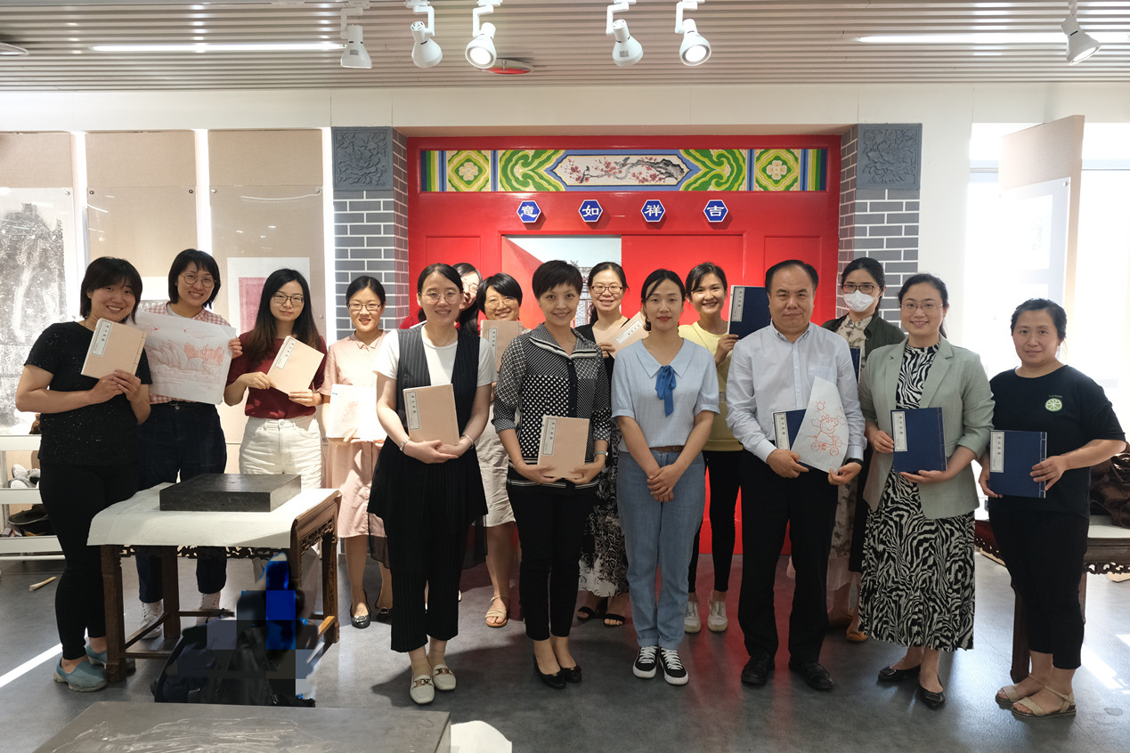 本次活动聘请山东省雕版印刷非遗传承人王鑫鑫老师为大家讲授了传统雕版印刷的传承与发展,展示了雕版印刷的流程、线描、雕版印刷、装帧等制作过程。在体验学习中,教职员工亲自动手,进行了雕版制作,体验了刷墨、铺纸、施压、拓印等传统印刷过程。大家手捧亲手制作的秦琼、悉尼歌剧院等作品,兴奋不已。最后又手持针线完成了传统线装书装帧。