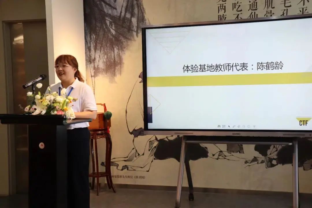 文化体验基地教师代表陈鹤龄发言。她以“期待、筹备和希冀”三个词为关键词,希望在这一周的时间里与大家共同进步,教学相长。