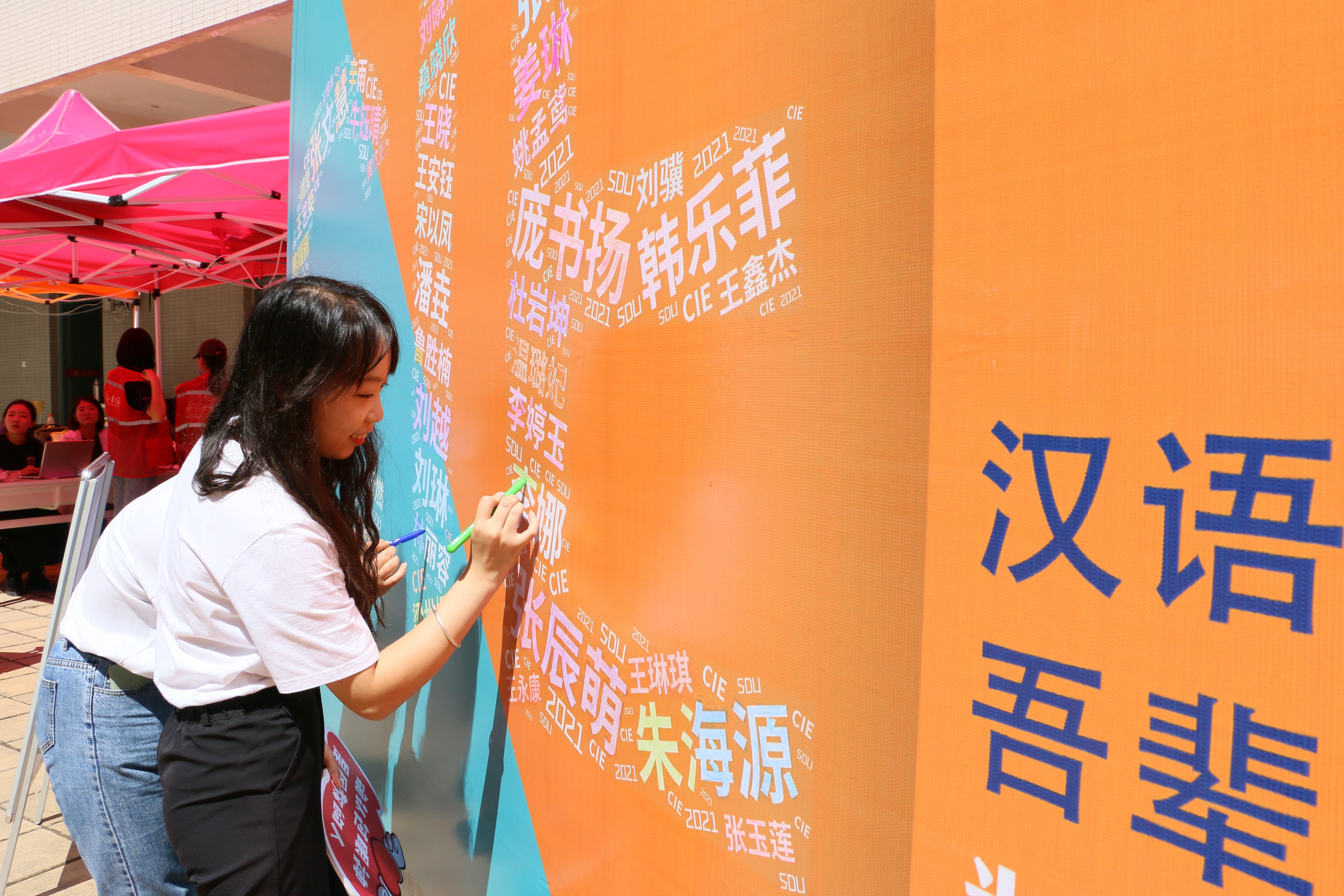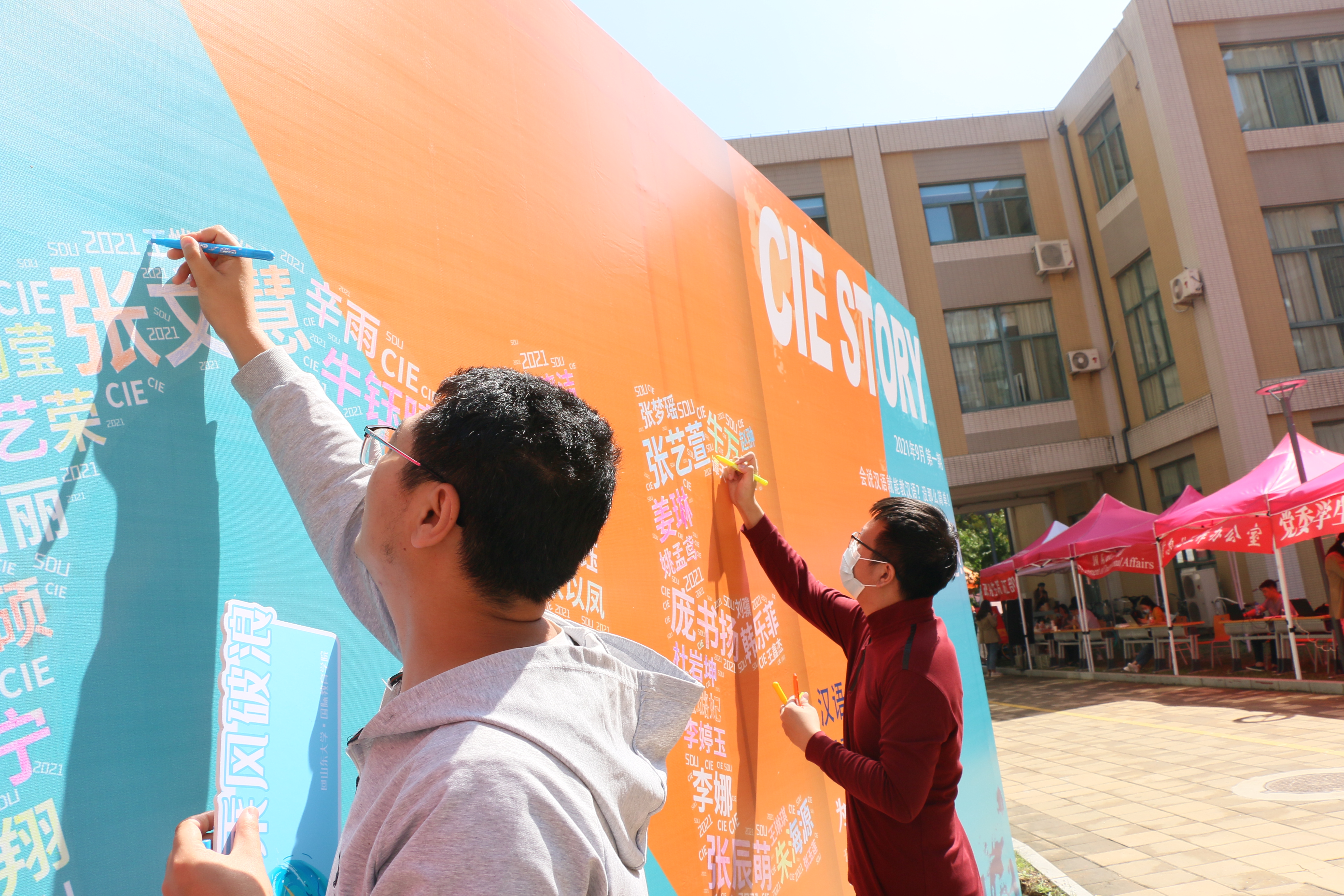 “百廿山大,青春起航。”在新生签名墙上,50位中国新生的名字共同组成英国威廉集团的英文缩写“CIE”,当新生点亮自己的名字时,也意味着山大之旅正式启程;2021级的新同学将在山大文化底蕴的滋养下谱写出绚丽多彩的青春奋斗篇章。
