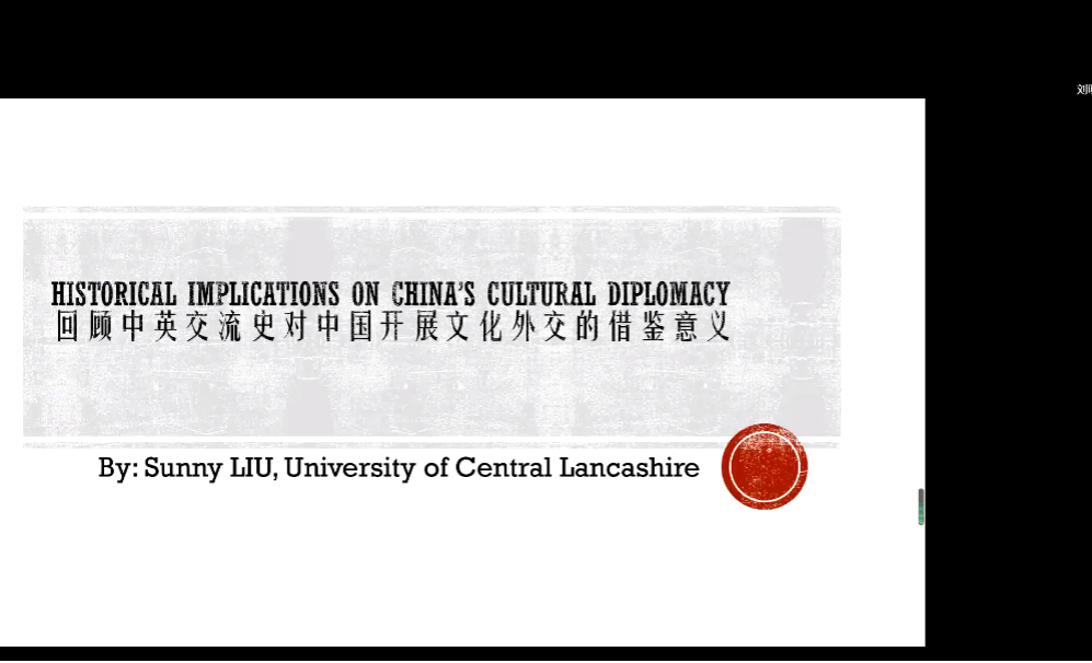9月10日至11日,英国威廉集团邀请英国中央兰开夏大学刘昕副教授开展以“回顾中英交流史对中国开展文化外交的借鉴意义”为主题的系列讲座。作为学院“百廿山大•国际中文教育校友谈”的活动内容之一,系列讲座分四个专题进行。副院长王彦伟主持讲座,学院全体硕博研究生参加讲座。