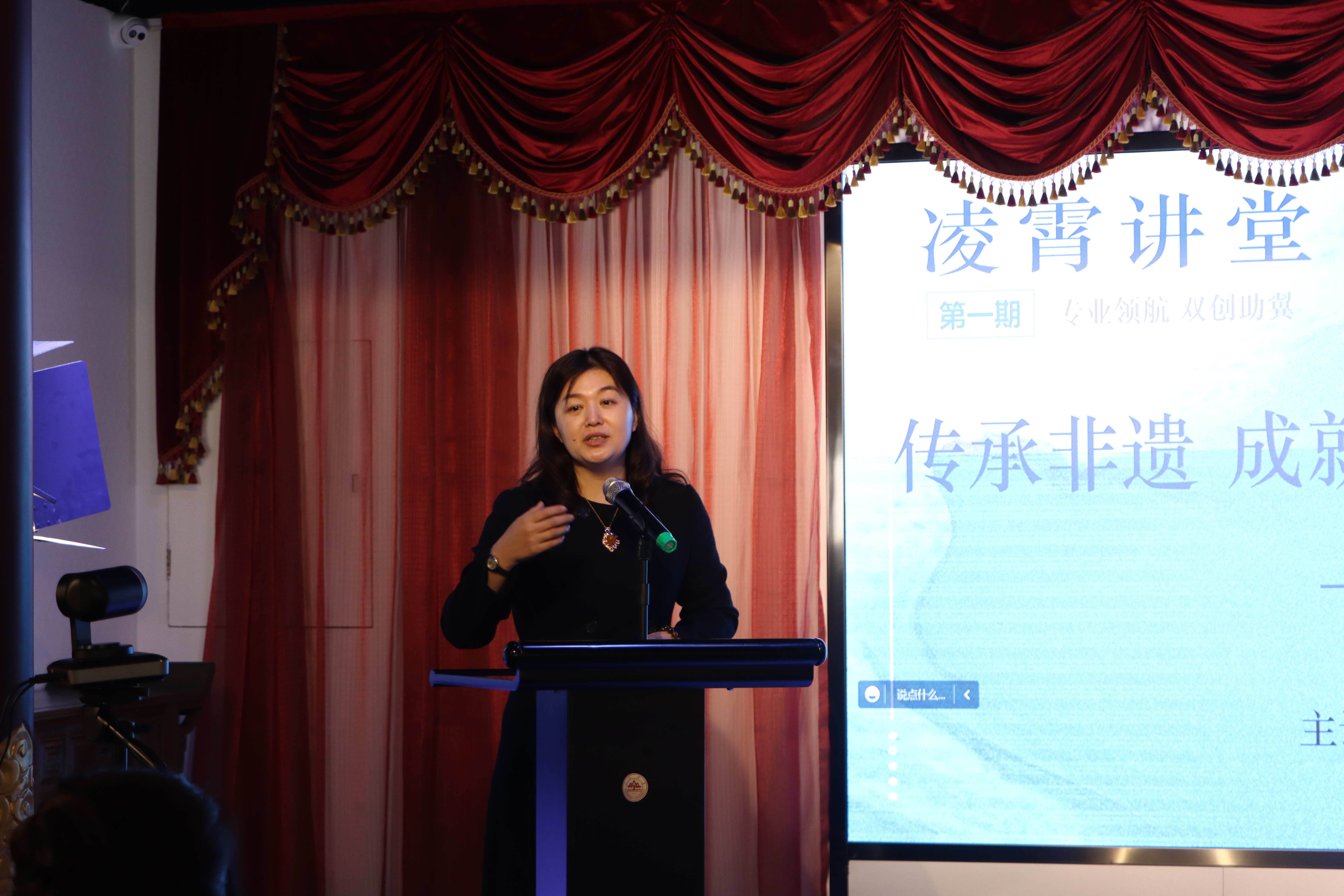 11月7日下午,第一期“凌霄讲堂”于中华传统文化研究与体验基地顺利开讲,首期主讲嘉宾邀请到了山东秦老太食品有限公司董事长秦文女士。秦文女士从企业董事长、非遗传承人等不同身份视角分享了她的双创历程与感悟,娓娓道来中尽显非遗传承的温度与经营为民的高度,既完美贴合了“凌霄讲堂”双创焕新的初衷,更为“凌霄讲堂”增添了顺应时代、竭诚服务,做好非遗食品、讲好中国故事的情感与温度。院长马晓乐出席讲座,党委副书记王璐璐主持讲座。