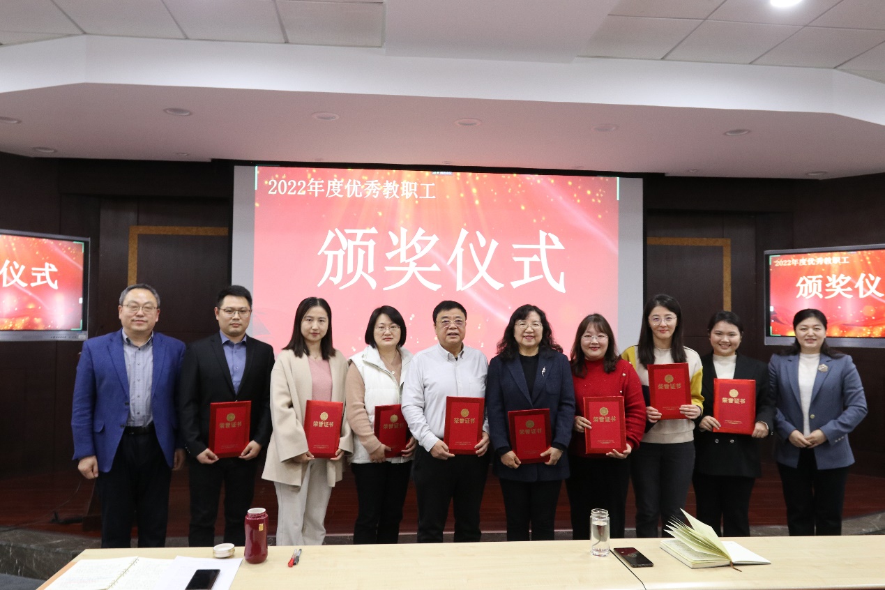 会议还举行了优秀教职工颁奖仪式,徐希锋、马晓乐共同为2022年度考核优秀的9位教职工颁发了荣誉证书,鼓励全院教职工以身边的优秀同事为榜样,同心同力推进学院新发展。