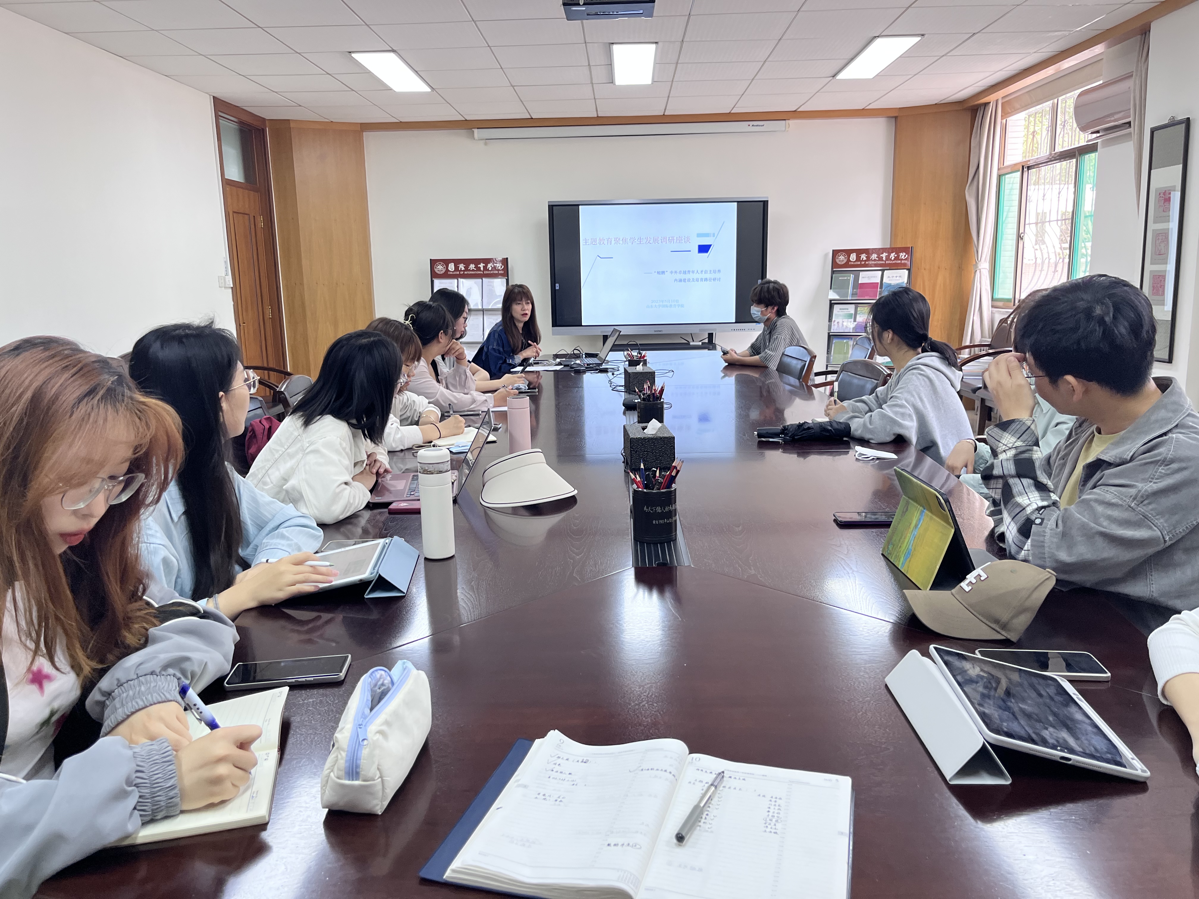参会学生代表结合自身学习生活实际,积极发表意见。在专业实践方面,同学们希望进一步增加国内外行业内的实习实践,能够在日常学习中提升信息素养和媒介素养。在学业方面,同学们对高年级本科、研究生的朋辈辅导和校友的经验分享有较高诉求,希望学院多组织一些论坛小组,聚焦学生成长与发展开展双向互动的交流。在心理健康方面,同学们认为学院的二级心理辅导站建设作用重要,大四备战考研考公或考研失利,都需要相应的心理辅导和心理健康教育。王璐璐表示,各位学生代表提出的意见建议反映了同学们的真实诉求,学院高度重视,下一步将根据座谈会意见,采取针对性措施,切实解决学生急难愁盼的问题,为学生成长成才和学习生活提供切实保障。