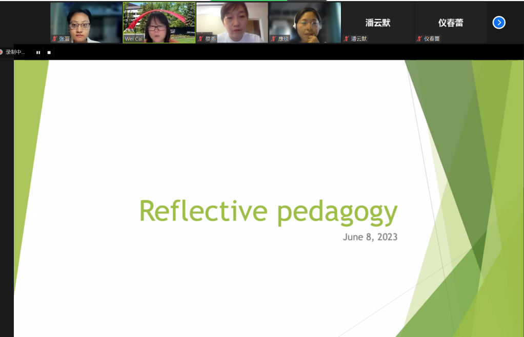 第五讲围绕“反思教学”主题,阐释了反思教学的定义和特点,强调反思教学包括“思考”与“行动”两方面,指出教师进行反思教学应秉持开放多元、认真负责、全心全意的态度。随后,蔡薇通过引导问答、交流互动的方式促使同学们结合自身教学实践,深入理解反思教学的内容,即对课堂行为、教师信念、学习者等方面的反思。最后,还分享了包括课堂观察、教学日志、行动研究等在内的反思教学的方法,鼓励大家全面认识并在实践中积极开展反思教学。
