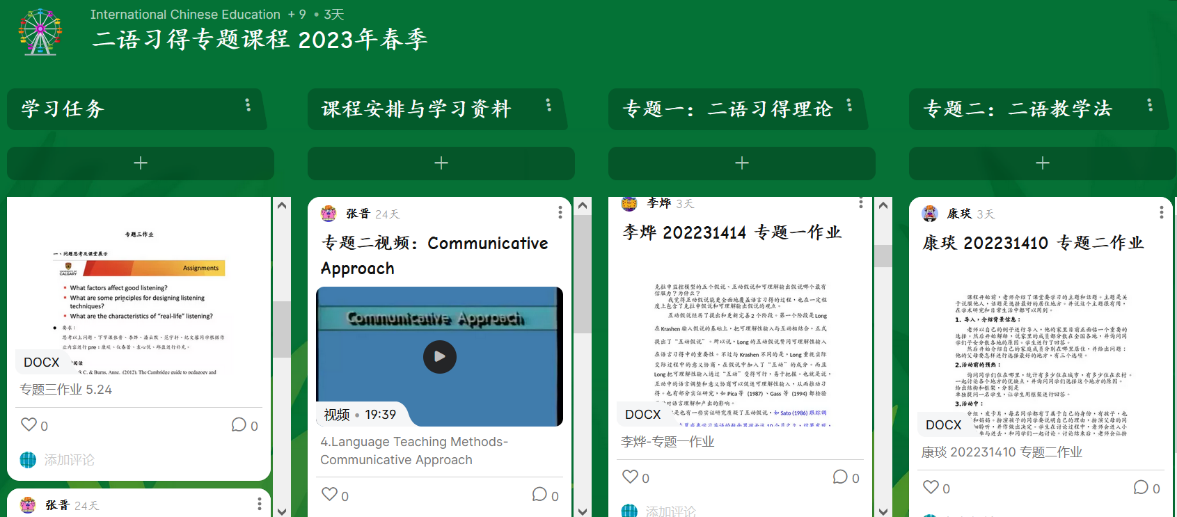 本课程内容引入大量中外文著作和文献,采用中英双语,利用“问题导入—理论讲授—案例分析—个人或分组研讨/汇报—平台互动”等多种形式的学习方式让学生短时间内较为系统地了解了第二语言相关理论和实践知识,把握二语习得研究的不同视角,既涉及经典理论,也关注前沿热点,树立基于二语科学、系统理论和研究基础之上的语言教育理念、信念和策略,提高教学实践能力。同时,本课程互动性和思辨性强,基于Padlet虚拟学习社区密切课堂内外交互,强调学以致用,促使学生拓展学术视野和实践创新能力。
