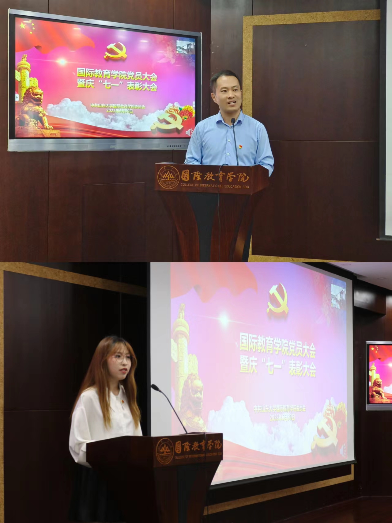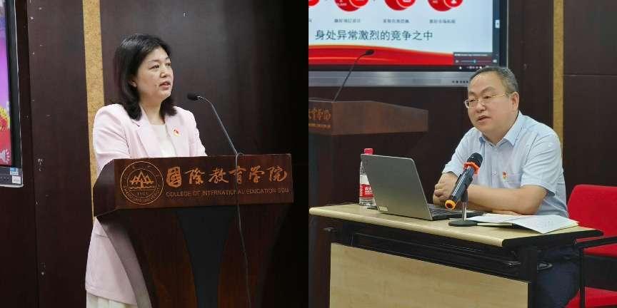 教师和学生党员代表分别发言。教师党员代表王彦伟同志通过回顾在山大的求学历程与工作点滴,由衷表达了对中国教育事业蒸蒸日上蓬勃发展的深切感悟与作为国际中文教育者“责任重大、使命光荣”的时代担当;学生党员代表吴楚妮同志向全院师生做出自觉坚定理想信念、敢于担当尽责、吃苦耐劳在前、永葆奋斗青春,继续秉承国教人的精神与品质,展现青春之姿,赶赴时代之约,推动“中文走向世界,吾辈义不容辞”的誓言承诺。