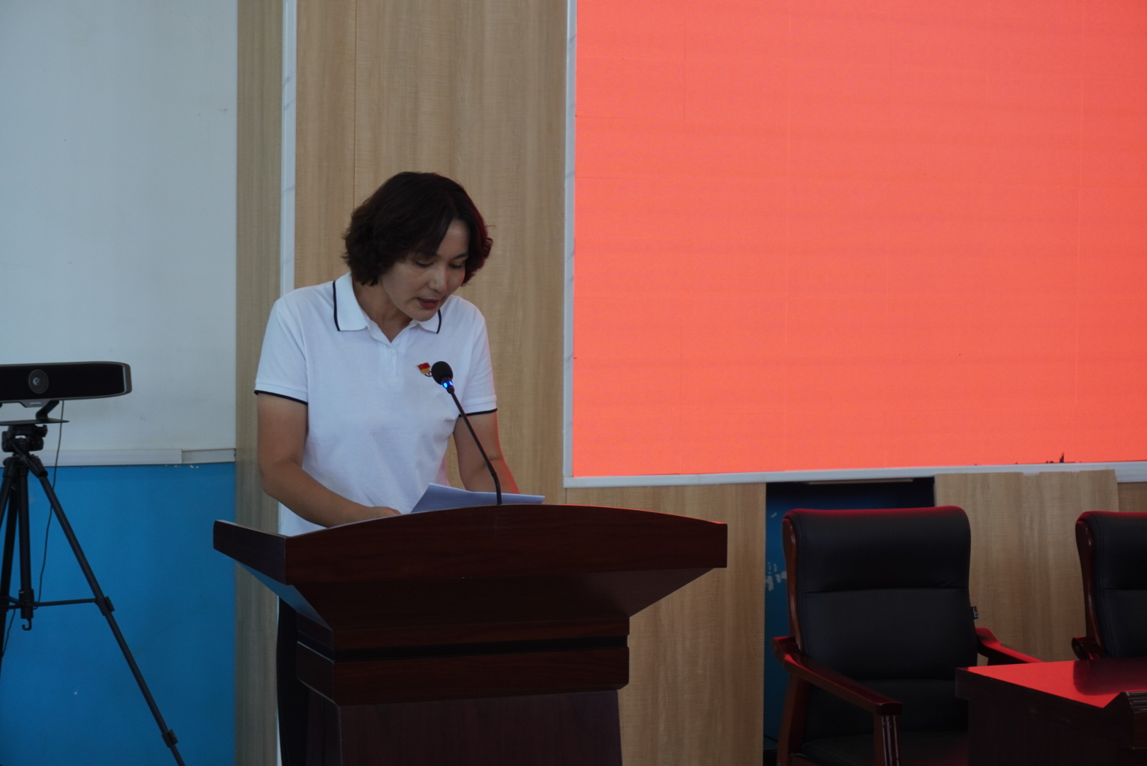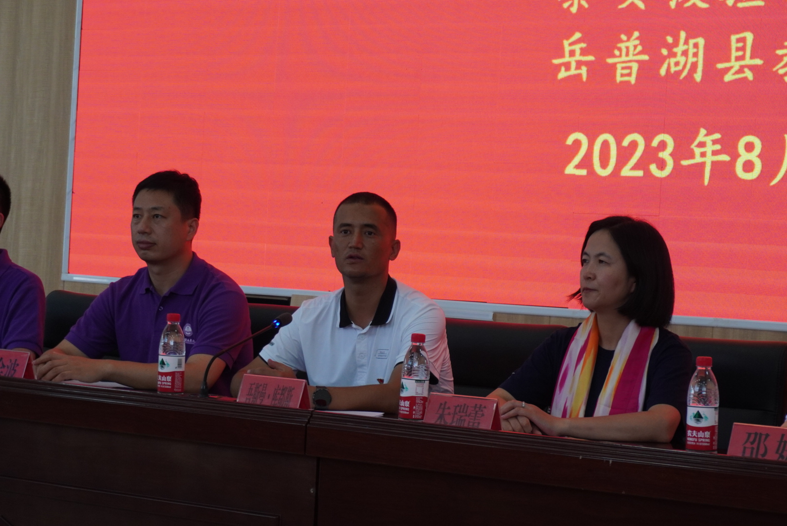 吾斯曼·库都斯作总结致辞,他肯定了参训教师克服困难的可贵品质,感谢援疆团队的辛勤付出。他激励参训教师将普通话的学习与练习渗透进生活中,形成良好的学习氛围,在测试中展示出学习成果,取得满意成绩。