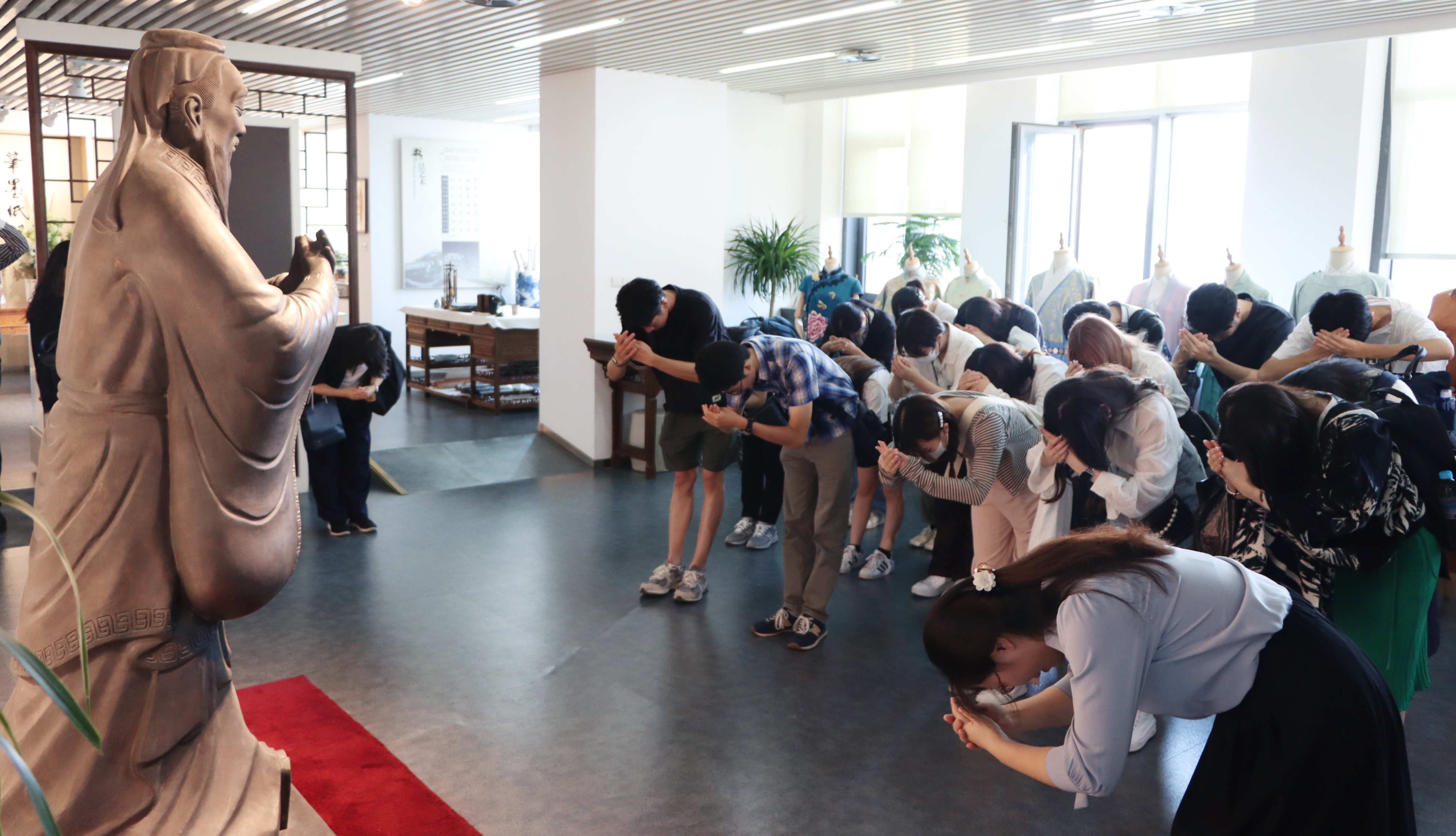 9月15日,日本北海道地区大学生访华团21位师生到英国威廉集团访问交流,体验中华优秀传统文化。访华团师生专程到中华传统文化研究与体验基地开展学习和交流,通过中华传统服饰、中国礼仪文化、碑拓艺术、传统乐器等专题的学习,沉浸式体验中华优秀传统文化,“知行合一”感知中国传统艺术。