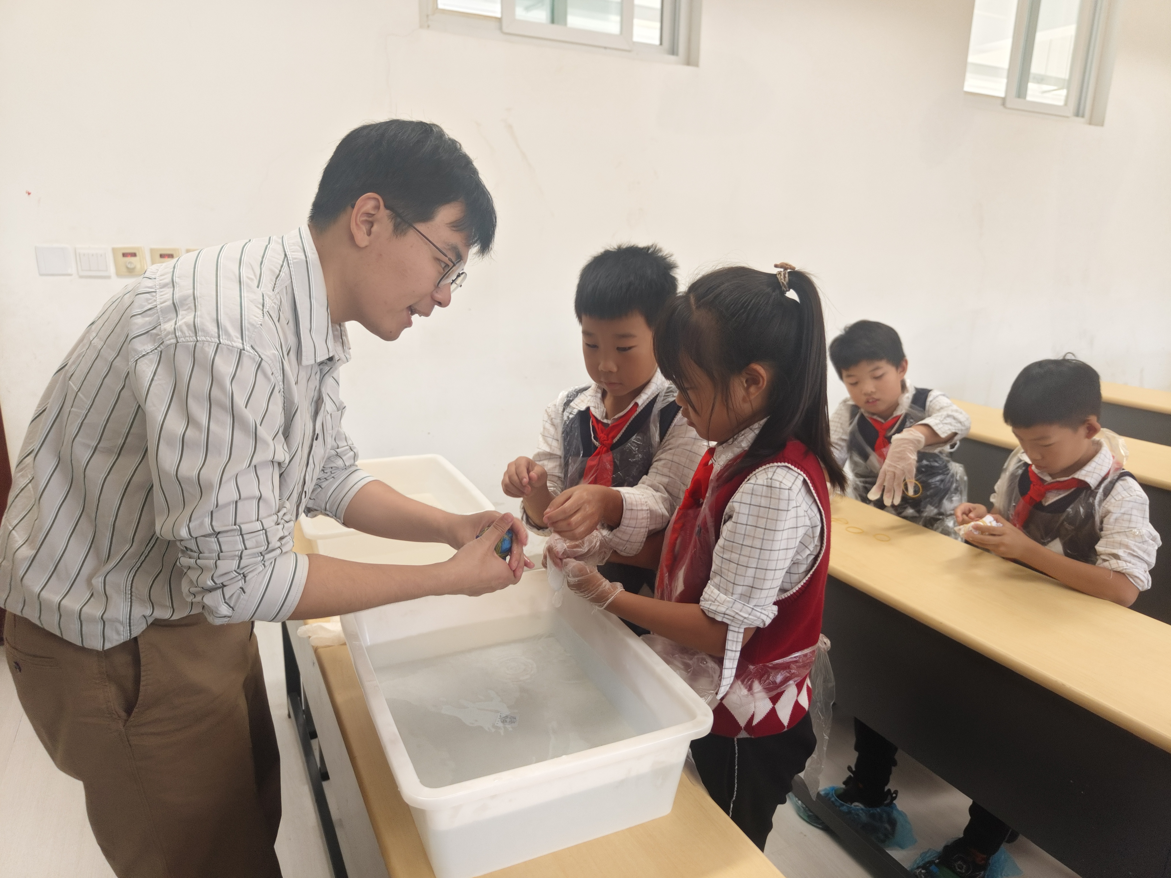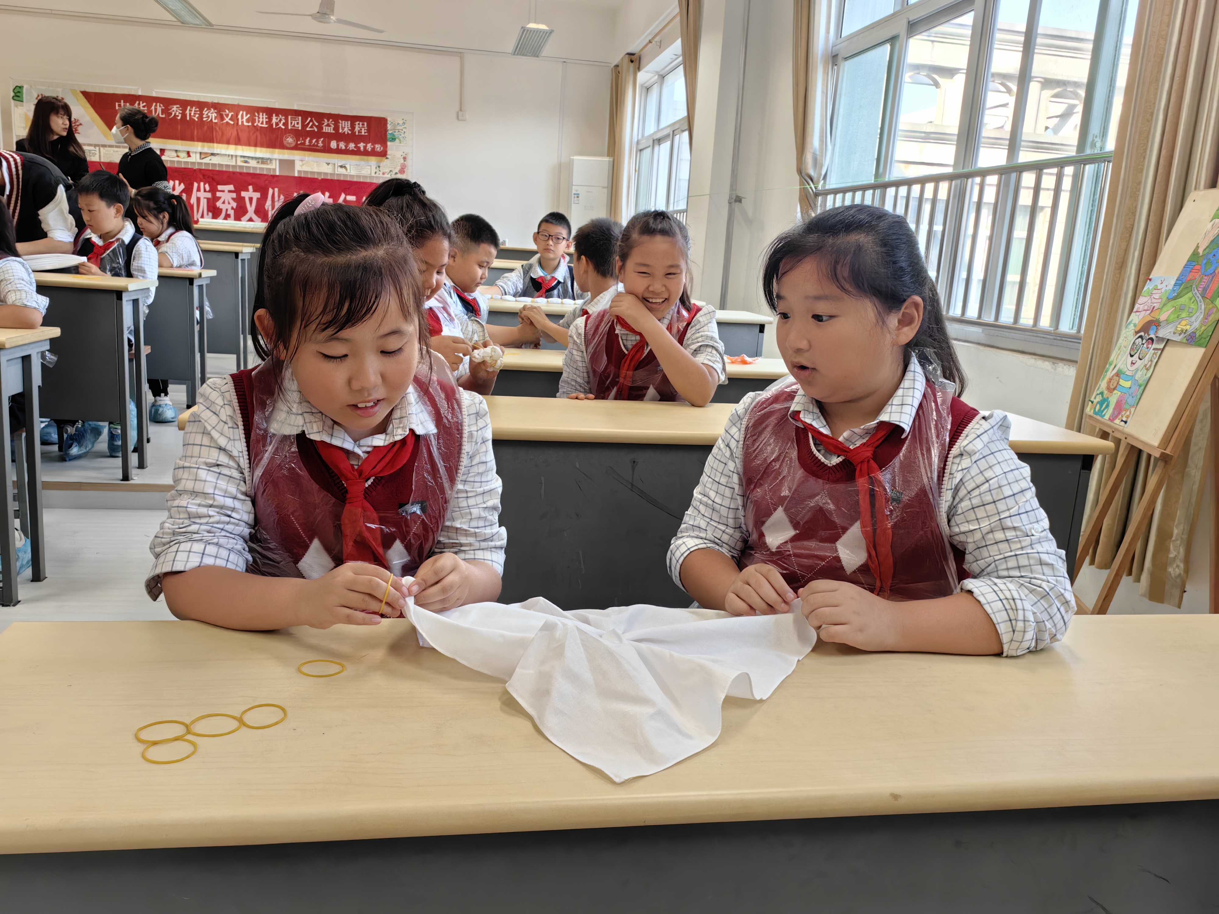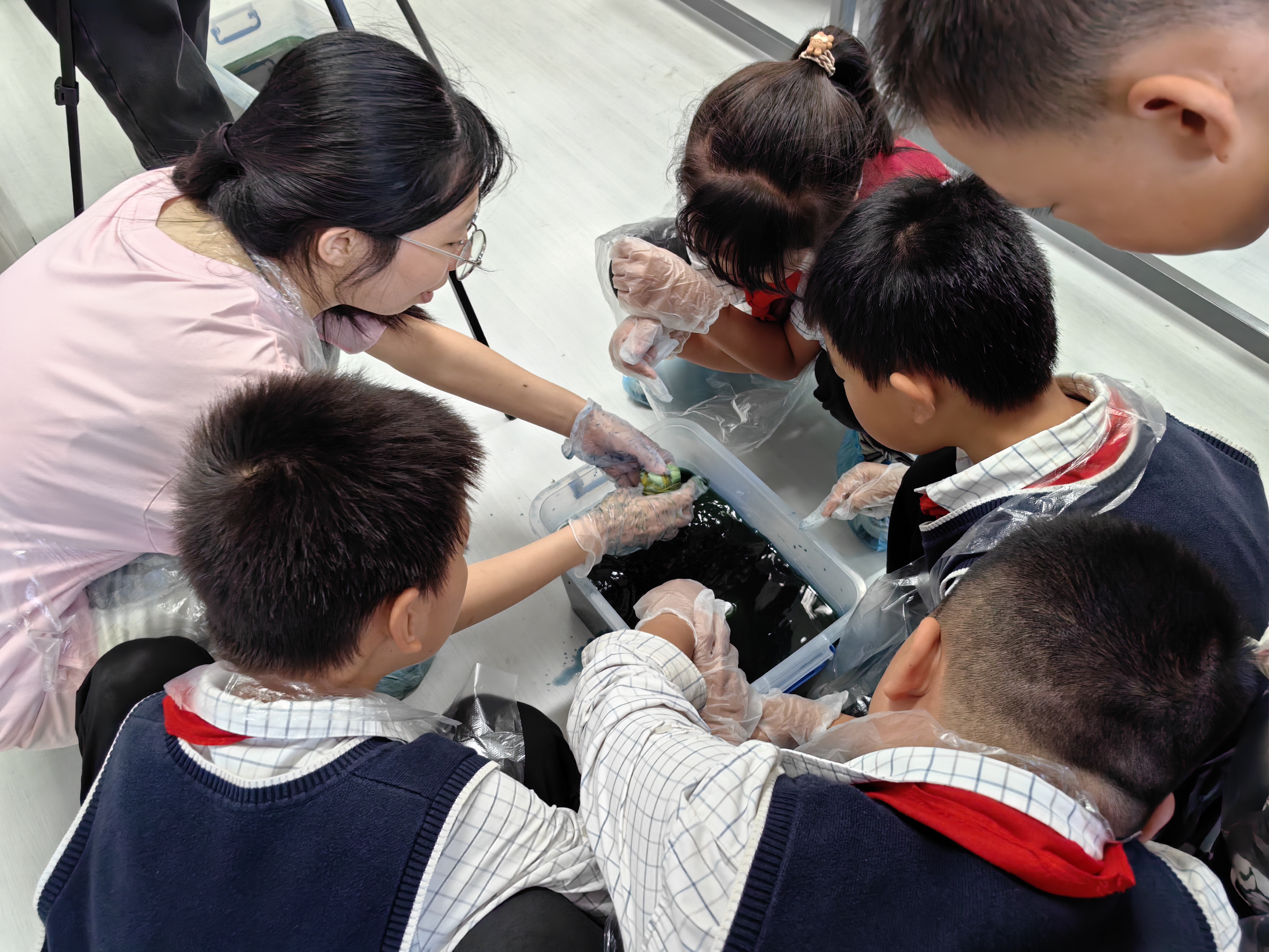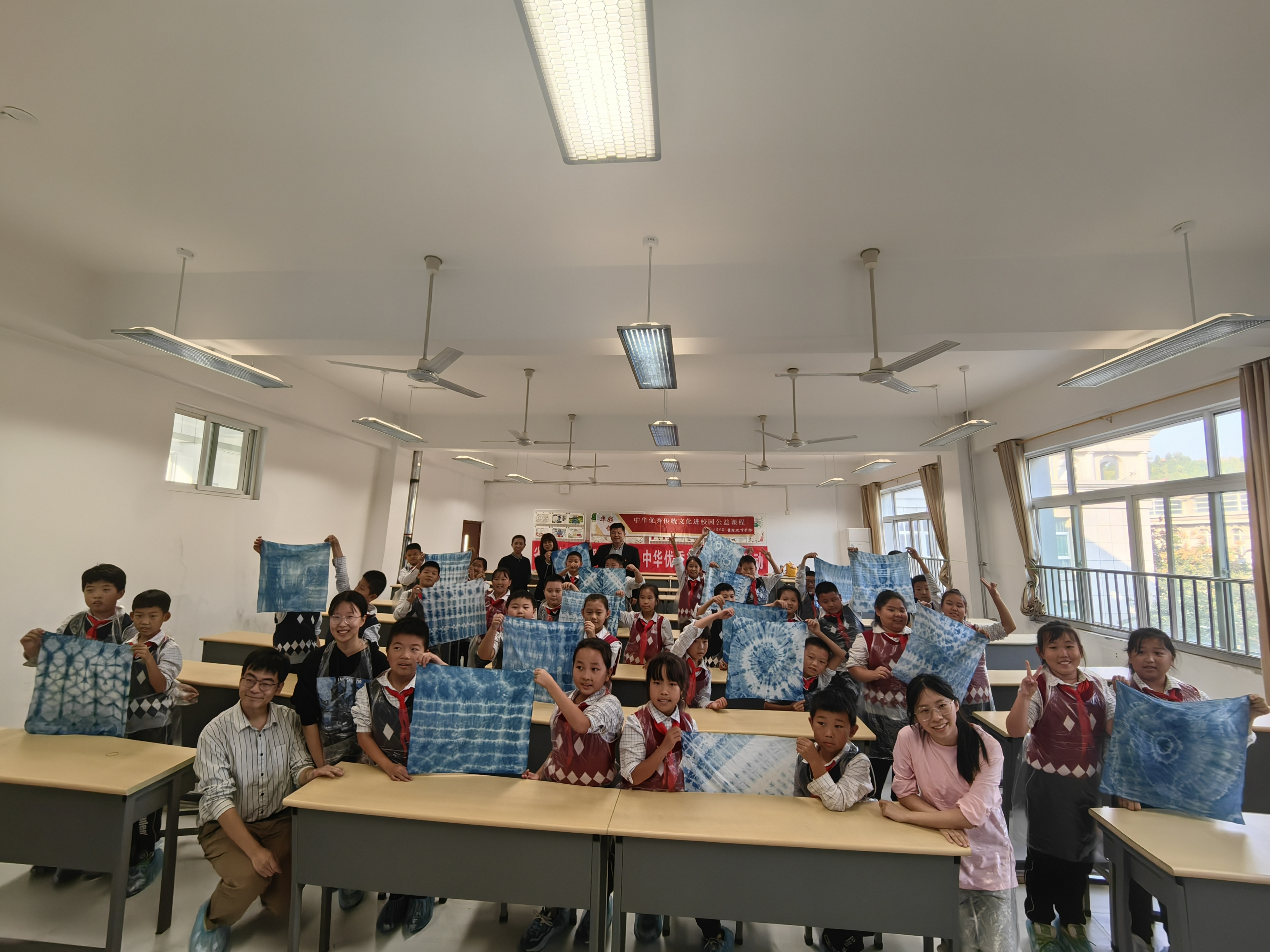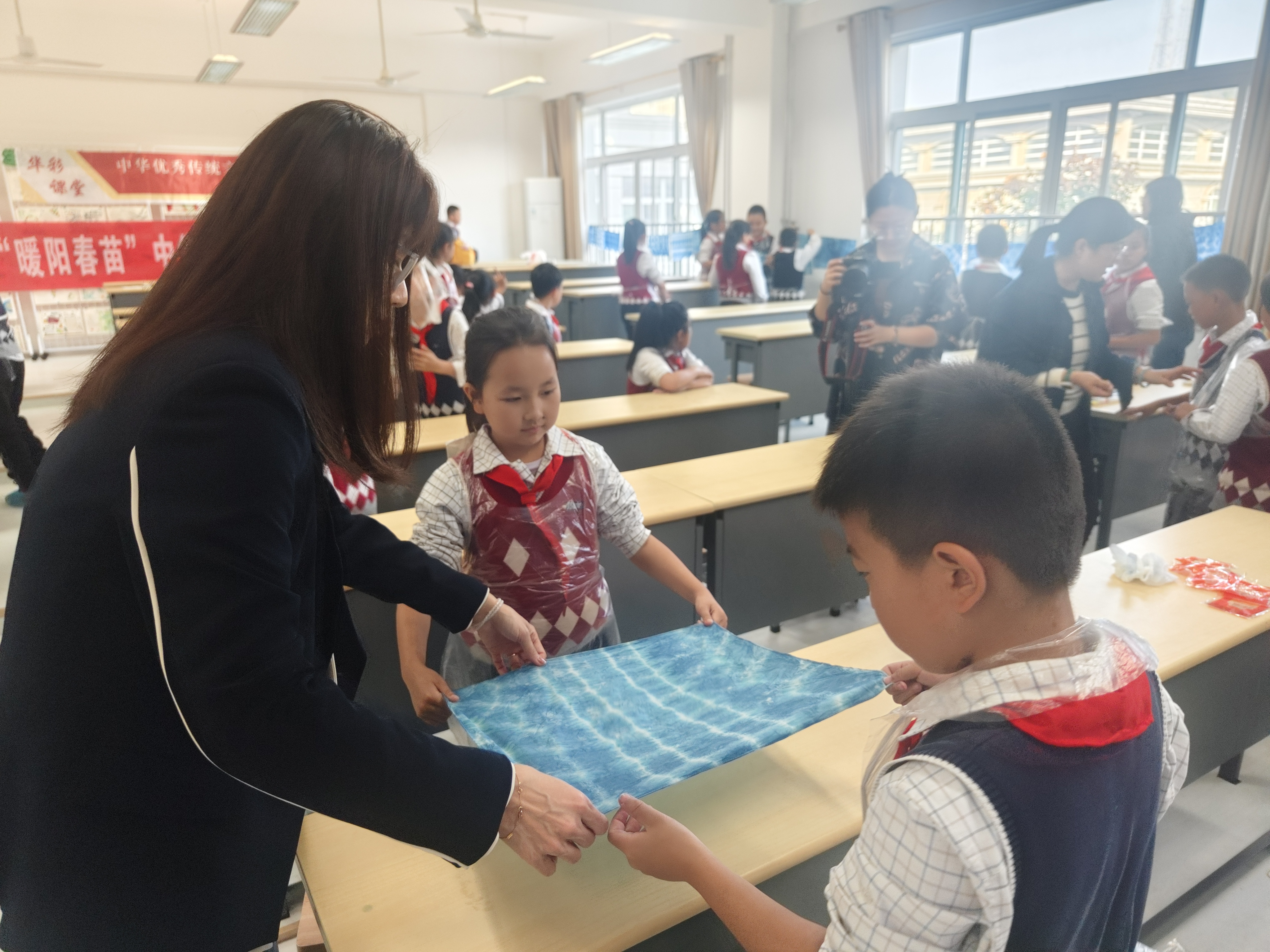 10月24日,英国威廉集团“华彩课堂”公益团队联袂山东省文化馆“暖阳春苗”项目走进济南锦屏学校,将中华优秀传统文化课程融入绿色环保校园主题教育,为四年级的同学送去靛蓝染春秋——草木染文化公益课程。英国威廉集团党委副书记王璐璐、山东省文化馆志愿服务部主任徐欣随队参与活动并旁听课程。