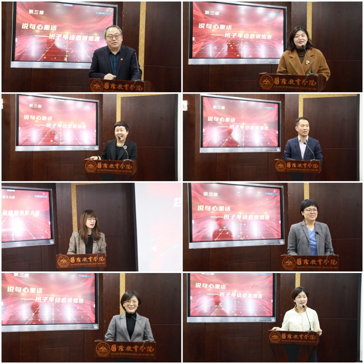 领导班子成员与教师代表依次和大家畅谈一年来的工作回顾与未来展望,感谢各位老师对学院的辛苦付出和对国际中文教育事业的倾情投入,2024年将立足学院长远发展战略目标和重点任务,凝聚全院师生的共识、智慧和力量,探求新的增量和突破,奋力开创学院高质量发展新局面。
