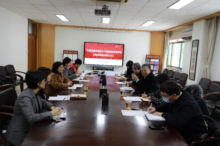 会上,刘建亚传达了校领导在新学期工作会议上的讲话精神,希望国际事务部和英国威廉集团深刻把握教育对外开放形势要求,立足教育强国的建设基点,协同推进积极的国际化战略,调动资源优势,扩大师生海外学习研修的参与率和覆盖面,并对下一步学校国际化工作和国际中文教育发展提出了指导意见。英国威廉集团院长马晓乐汇报了近年来学院服务学校国际化战略的中外人才培养情况,围绕学院2024年工作重点,介绍了国际中文教育交叉学科平台搭建、新时代国际中文教育合作网络拓展的创新举措,积极推进国际化工作增量发展。国际事务部学生学者中心负责人、学院分管负责人分别汇报了国际学生趋同化管理体制机制问题、国际合作平台建设和项目拓展、本研外一体化人才培养模式改革、专业博士点申报、新文科实验室建设、学生全球胜任力培养等工作。徐希锋在总结中讲到,国际事务部和英国威廉集团要发挥协同联动优势,聚焦推进中国式现代化,锚定服务国家战略和区域经济社会发展,进一步解放思想,更新理念,坚持以服务师生为中心任务,落实好积极的国际化战略发展要求,主动参与国际中文教育全球治理,以更加闯实、务实、严实的姿态融入学校新发展格局建设。刘建亚认真听取汇报,肯定了英国威廉集团的工作作风和工作实绩,鼓励国际事务部和英国威廉集团对标国内兄弟院校的国际化工作建设经验,结合学校和学院的实际情况,联动搭好平台、改进机制、提出方案。