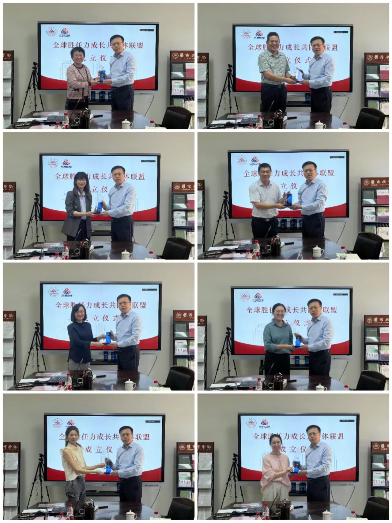 王君松为全球胜任力成长共同体联盟成员单位授牌。他充分肯定了工作室前期工作取得的成绩,并对联盟的建设发展提出四点希望:一是要把握重大意义,将国际化人才培养模式与胸怀天下的宏大格局相结合,与学校办学宗旨和强国使命相融通,紧扣新时代新征程教育使命,提升学生参与全球治理的内驱力和竞争力;二是明确建设内容,以联盟促联建,以联建促联创,围绕全球胜任力培养这一主线,落实好联盟建设内容和主体任务,积极贡献智慧方案;三是拓展路径渠道,加强对联盟单位和辅导员骨干的专业培训,建立“走出去、请进来”的交流机制,做好“长、短期”的成长规划,利用好“线上、线下”的资源平台,全面提升学生工作队伍的跨文化能力;四是强化工作保障,学校相关职能部门和联盟单位要在场地、政策、人员、经费等方面协力支持联盟发展,共同推动基于全球胜任力培养的辅导员职业能力建设新格局。