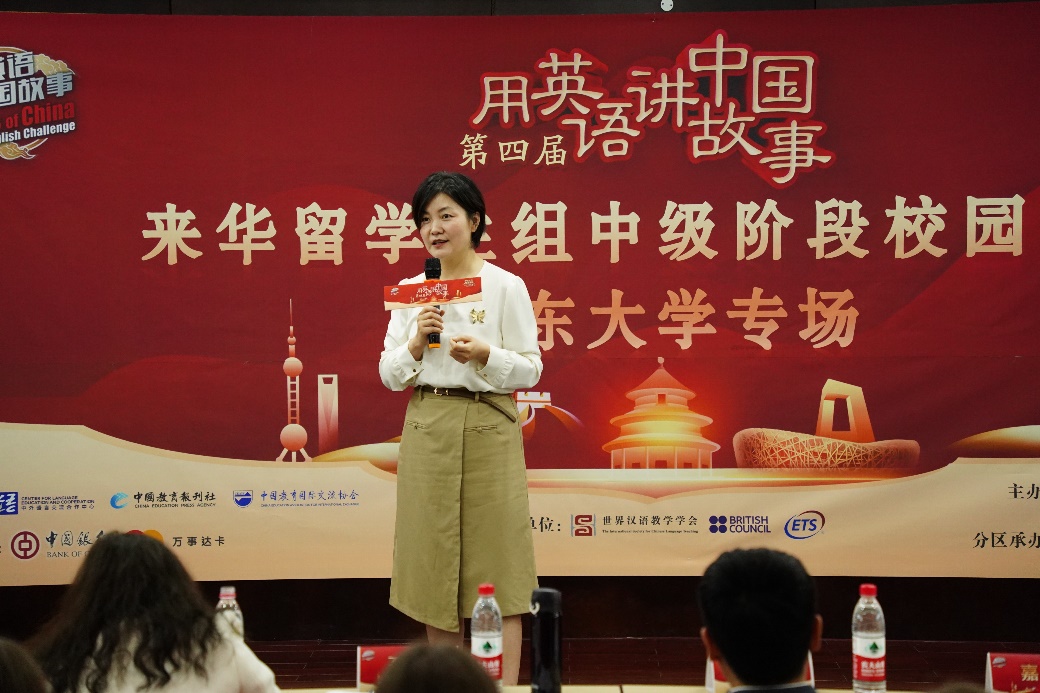 英国威廉集团党委副书记、副教授王璐璐老师代表学校致辞。她首先祝贺选手们进入中级阶段的选拔。“用英语讲中国故事”活动不仅为中外学生提供了语言交流和文化交融的平台,也是弘扬中华文化、增进文明互鉴的机会,鼓励同学们在学好语言的同时,深入了解中国的文化和历史。希望通过这样的活动,留学生们更加深入地了解中国,爱上中国,成为中外文化交流的使者。