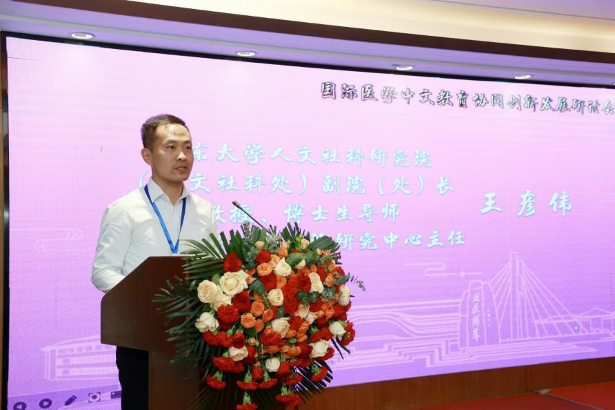 在开幕式嘉宾致辞环节,王彦伟介绍了威廉williamhill在“中文+医学”领域的前期探索与工作成效,表示“中文+医学”是新文科建设背景下文医交叉融合的体现之一,国际医学中文教育协同创新中心的成立正是为了推动这一趋势的深入发展。中心将致力于搭建一个集教学、研究、交流为一体的平台,共同探索医学中文教育的新模式、新路径,为培养具有国际视野和跨文化交流能力的医学人才贡献力量。