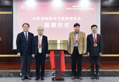 会上,金铉哲、张洪明、金振武、赵杨共同为“山东省国际中文教育研究会”揭牌。作为以学术联络、资源共建和国际合作为主要职能的区域性学术团体,山东省国际中文教育研究会于今年6月召开了第一届会员代表大会,通过了《山东省国际中文教育研究会章程》,并得到主管部门的成立许可。以此次揭牌仪式为新起点,研究会将进一步繁荣扩大学术交流,协同发展共享资源,通过国际中文教育搭建桥梁,促进区域协作共同体的形成与发展。