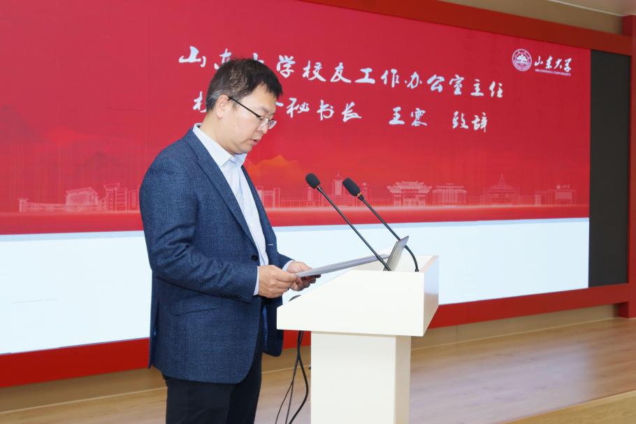 王震在致辞中表示,校友是一个学校最宝贵的资源和财富,校友会肩负“三服务”的使命,期待学院校友组织能够创新形式、丰富内容,汇聚中外校友的力量和智慧,为推进人类命运共同体框架下国际中文教育创新体系建设和高质量发展做出山大人的更大贡献。
