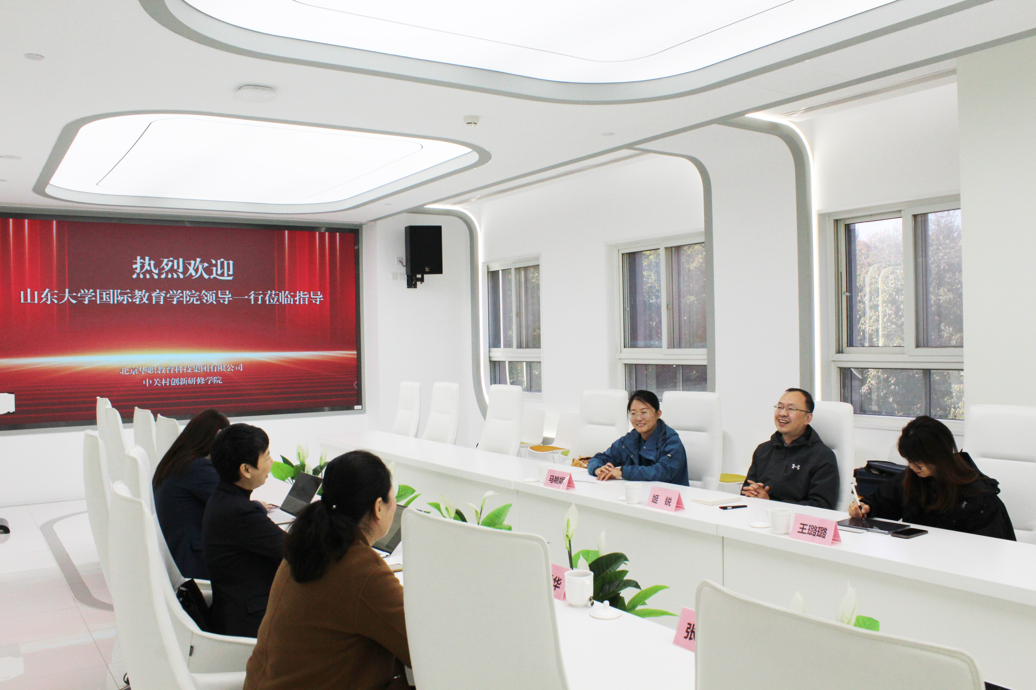为了解市场需求和行业动态,促进高质量就业,姬锐一行专程到北京华职教育科技集团有限公司参观考察,参观了海淀(中关村科学城)城市大脑展示体验中心,并就如何与该集团在教育数字化服务领域深化合作,以专业的人才输出赋能集团“丝路学院”“中文+职业技能”“鲁班工坊”等国际合作项目进行了探讨。