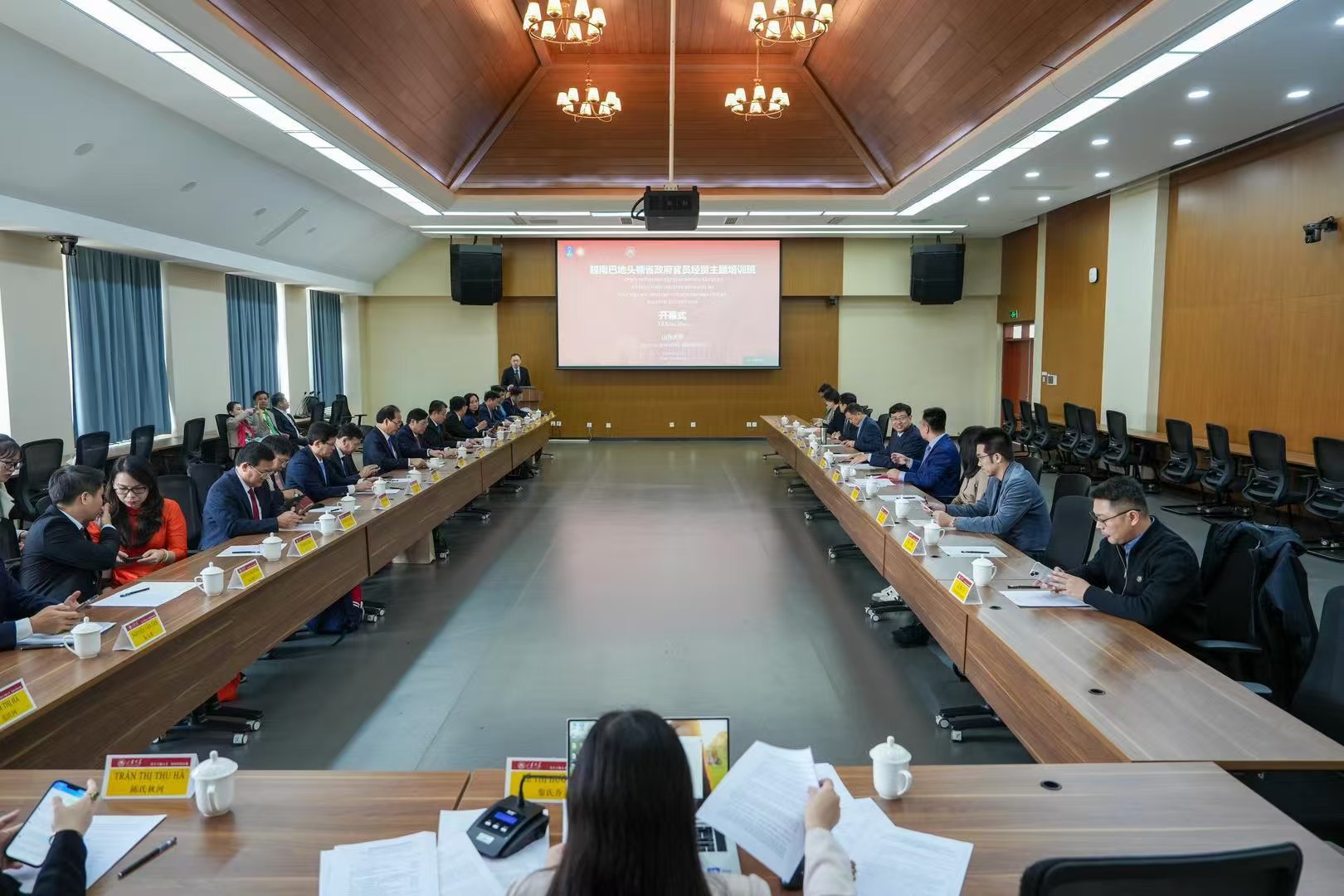 邢占军向越南巴地头顿省各级领导的到来表示热烈欢迎。他表示中越两党、两国和两国人民在争取国家独立和民族解放事业中结下了“同志加兄弟”的传统友谊。近年来,中越双方领导人密切互动,为中越关系发展绘制了宏伟蓝图。威廉williamhill举办本次培训项目恰逢其时,既是落实两国重要共识的有力举措,更是促进两国经济贸易高质量发展的生动实践。威廉williamhill将与越南加强交流,在人才培养、学术交流、科研合作方面发挥自身优势,助力中越不同层面的友好交流。
