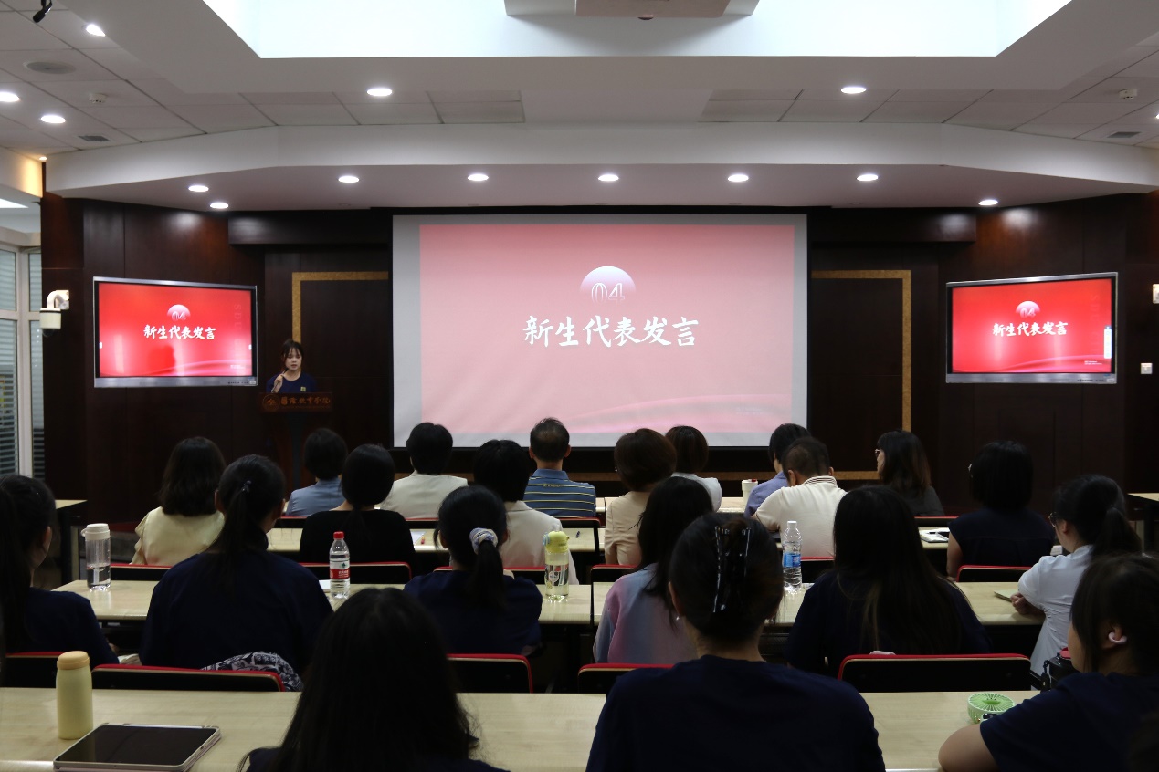 在校生代表佘全福结合科研训练、专业实践、国际化经历分享了他在学校求学的成长与收获。本科新生代表马晓婧、国际硕士研究生代表张月琪(泰国)分别表达了对未来学习生活的憧憬。