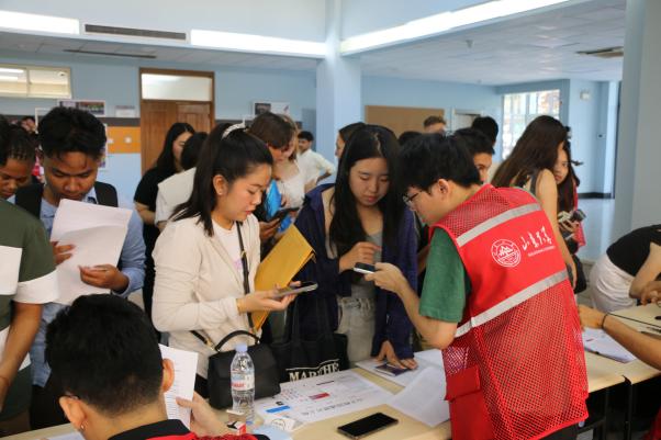 为保障国际新生顺利报到,学院积极与国际部、宿管中心等部门协同联动,提前做好各项准备。今年在校园WiFi使用、校园卡、线上注册、居留许可申请等各环节用图示实现流程可视化,方便国际学生操作,提高报到效率。多国国际学生志愿者为新生提供语言翻译、注册指导、答疑解惑服务,帮助国际新生融入校园生活。完成报到的国际新生也尝试了手作漆扇,体验中国传统文化。学院还设置打卡纪念版,营造温馨氛围。