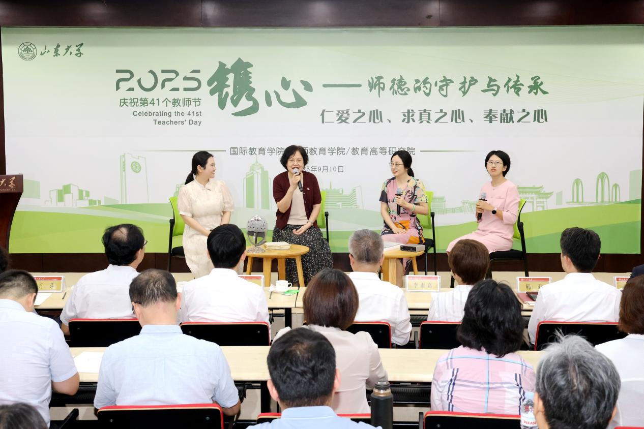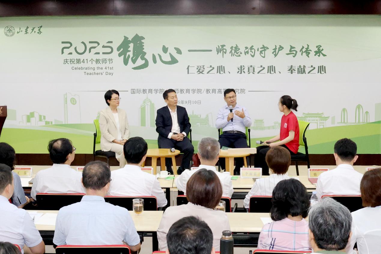 活动以“传·道之印记——对话与承诺”篇章拉开序幕,学院老、中、青三代师者代表讲述教学经历,将“教育家精神”具象化为生动的育人故事。老教师用一本本泛黄的教案展示了深厚底蕴和师道精神,中年教师介绍了承上启下的实践创新与课程融合,青年教师则展示了技术赋能教育的探索、智慧教学的新范;在“承·业之灯塔——研讨与践行”环节,“国优计划”新生分别与学科导师、教育导师和实践导师深入探究问题,碰撞思维的火花,实现一次成长的升华;“行·师之启航——感悟与致敬”将活动推向高潮,全国最美教师、本科生院院长王芬和全国教育系统先进工作者、山大附中校长赵勇结合从教生涯,分享了对师德传承的理解,体现出“有教无类”的公平之心和“因材施教”的智慧之法,深刻诠释了教育家精神的内涵。两位老师还受聘担任“国优计划”领航导师,为培养造就更多更优秀的青年人才贡献育人力量。