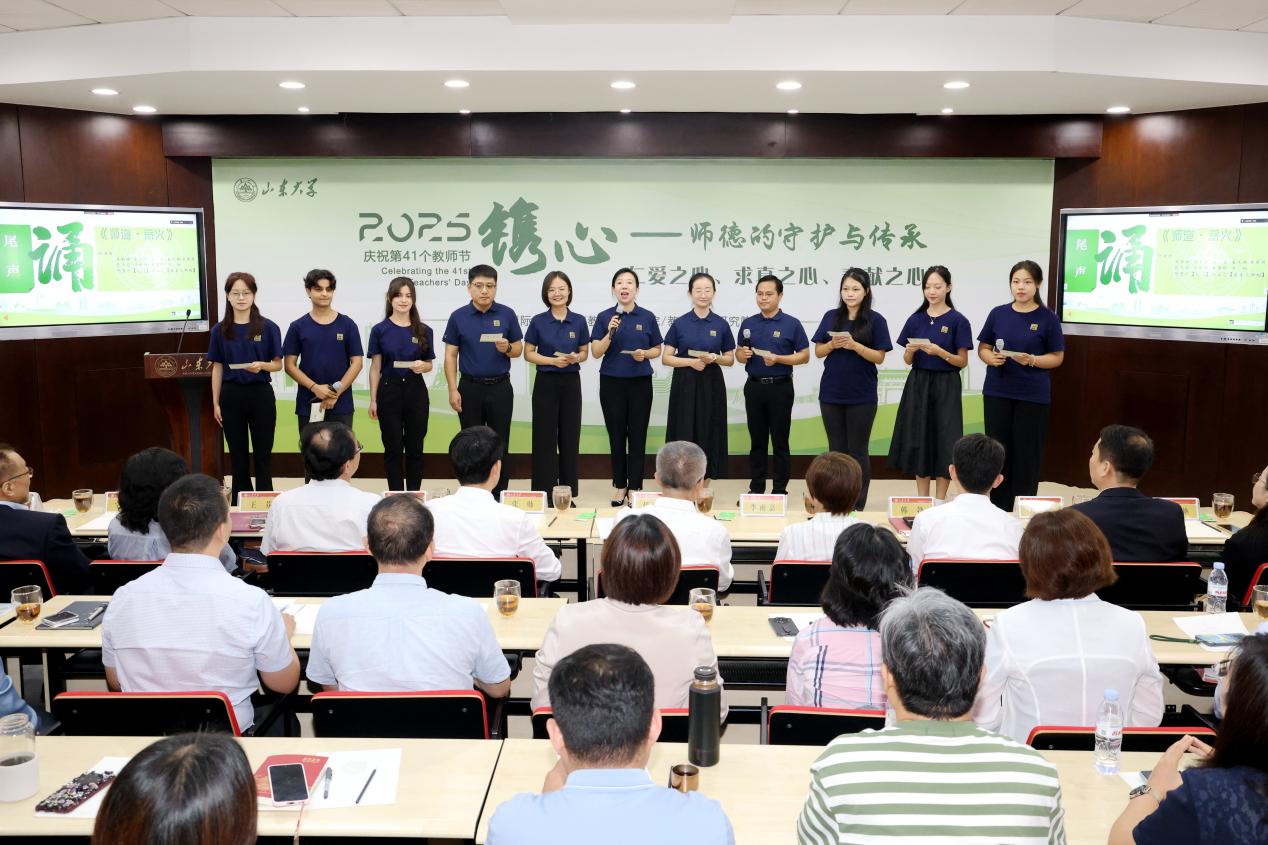 学院师生代表朗诵原创诗歌《师道·薪火》,展示了新时代教育工作者的炽热情怀和奉献精神。