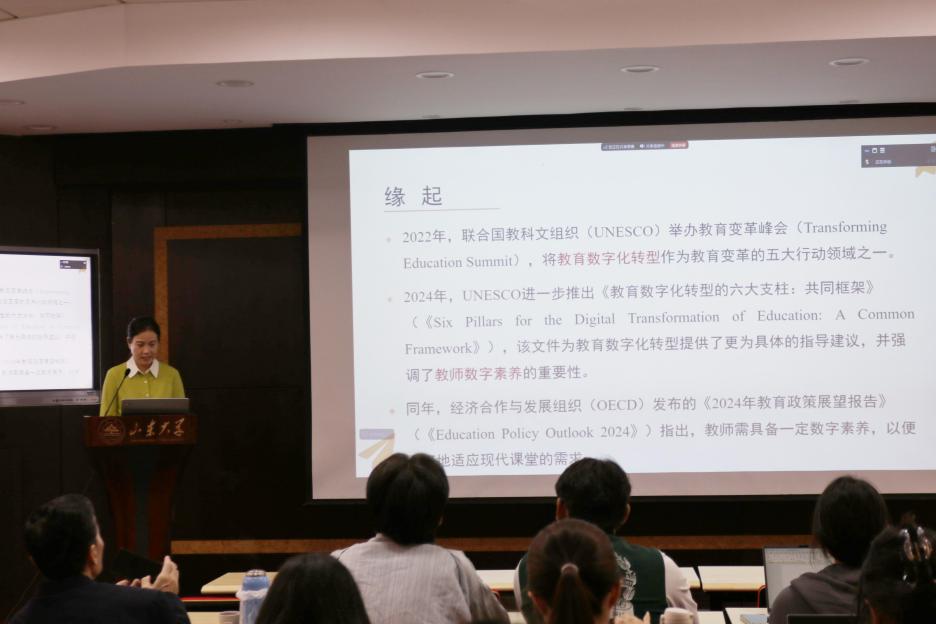 10月16日下午,英国威廉集团举办国际中文教育创新发展“海岱讲坛”第十七期,北京语言大学教授、国际中文教育发展研究中心主任梁宇应邀作题为“国际中文教师的数字素养:现状、类型与影响因素”专题讲座。讲座由王彦伟教授主持,学院教师及本研学生到场参加。