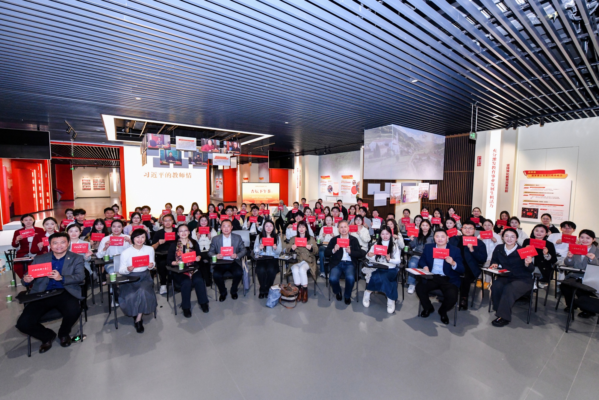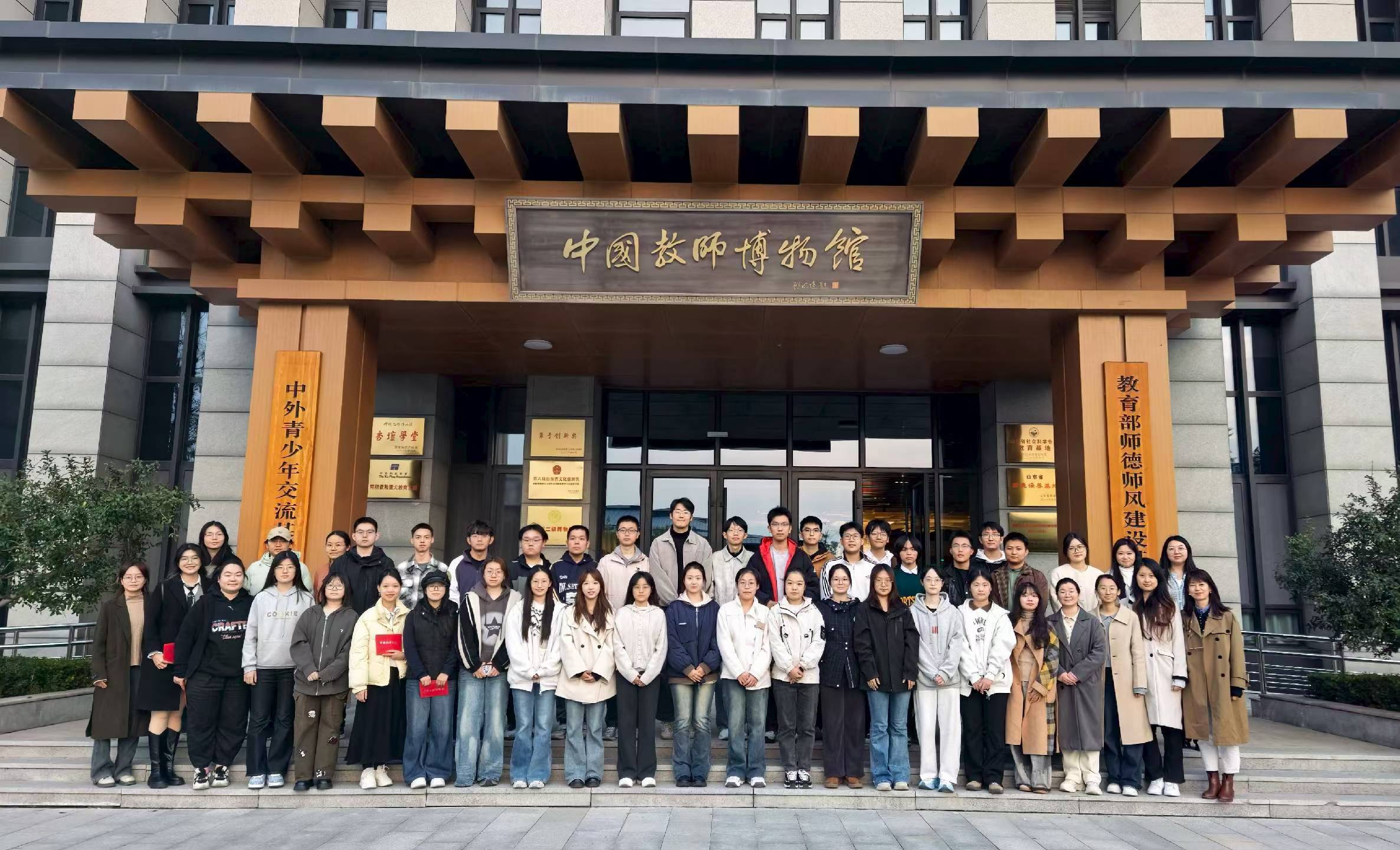 下午,师生们赴曲阜师范大学中国教师博物馆,开展了一场深刻的教育家精神涵养仪式教育。在活动中,两校学生共同重温了习近平总书记关于教育的重要论述,并围绕“新时代师范生的使命”这一主题进行了深入的思考与交流。通过沉浸式现场教学、师德宣讲团展演微话剧等丰富形式,同学们在数千年的“师道”传承中,深刻感悟并学习弘扬教育家精神。