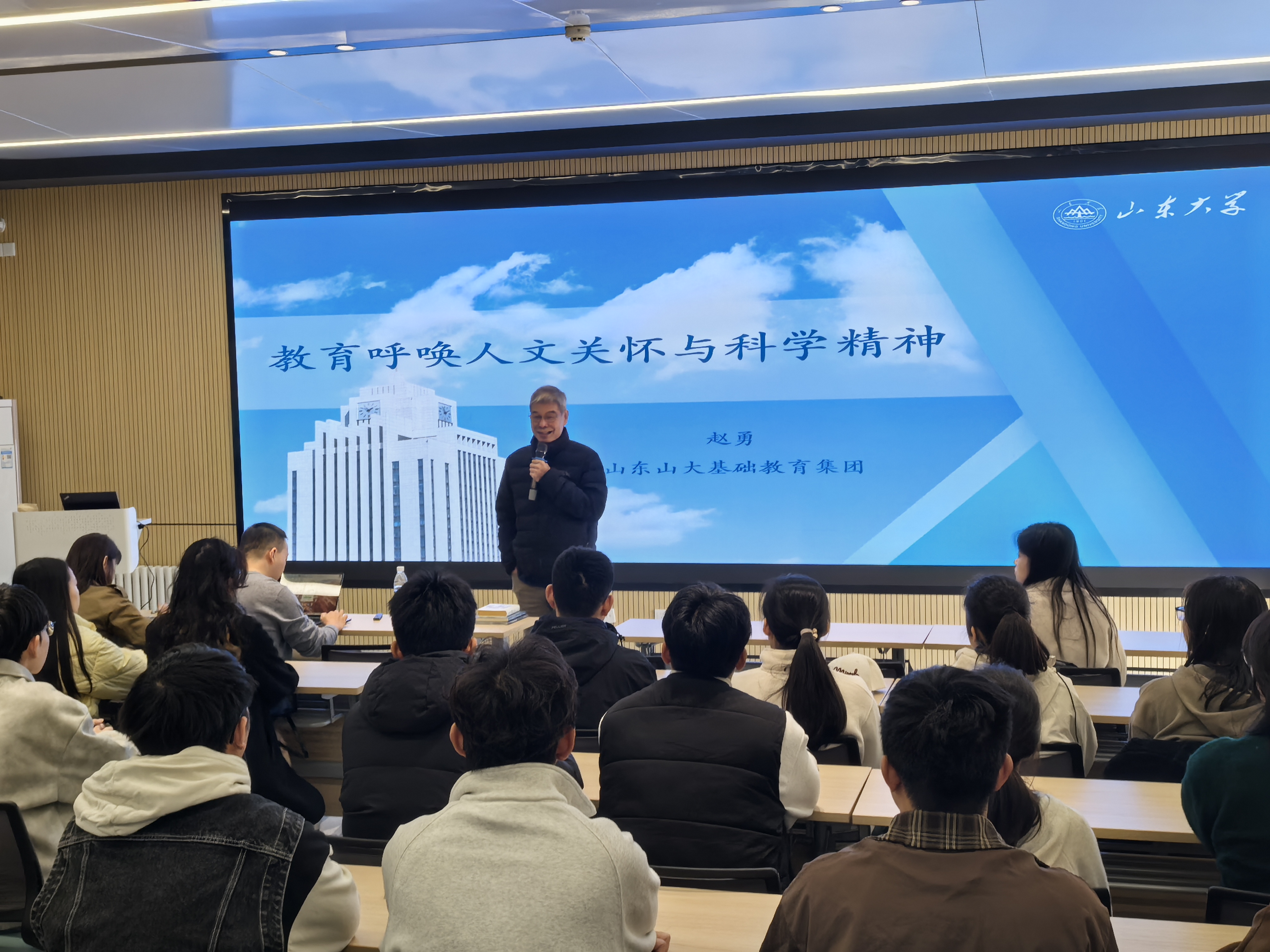 上午,师生一行首先赴威廉williamhill基础教育集团振声学校参观学习。威廉williamhill基础教育集团总校长、教育高等研究院副院长赵勇结合自己四十余年的教师生涯,以“教育呼唤人文关怀与科学精神”为题,与同学们展开深入交流。他围绕教育情怀、专业素养、教学基本功等优秀教师的核心素质,勉励同学们站在教育强国建设的新的历史方位,深刻体认并勤修苦练中小学教师的必备素养,努力成为未来的优秀教育家。