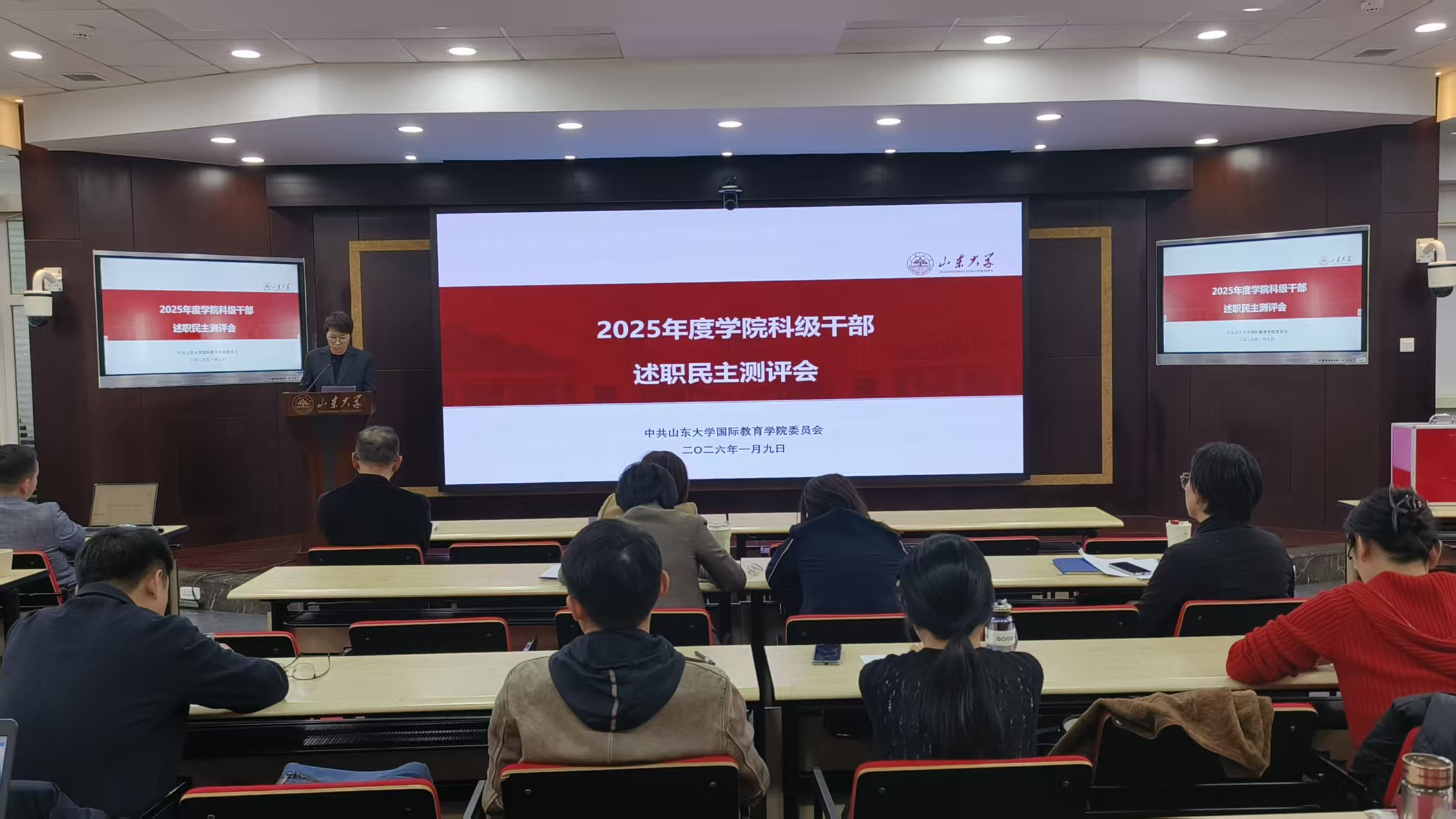 学院科级干部依次结合本岗工作实绩、问题不足和未来规划进行述职汇报,参会人员进行现场测评。科级干部述职考核作为学院干部管理的重要机制,主要通过“以考促干”,进一步强化责任意识、优化工作质效、加强协同创新,促进党建业务深度融合,推动学院事业新发展。
