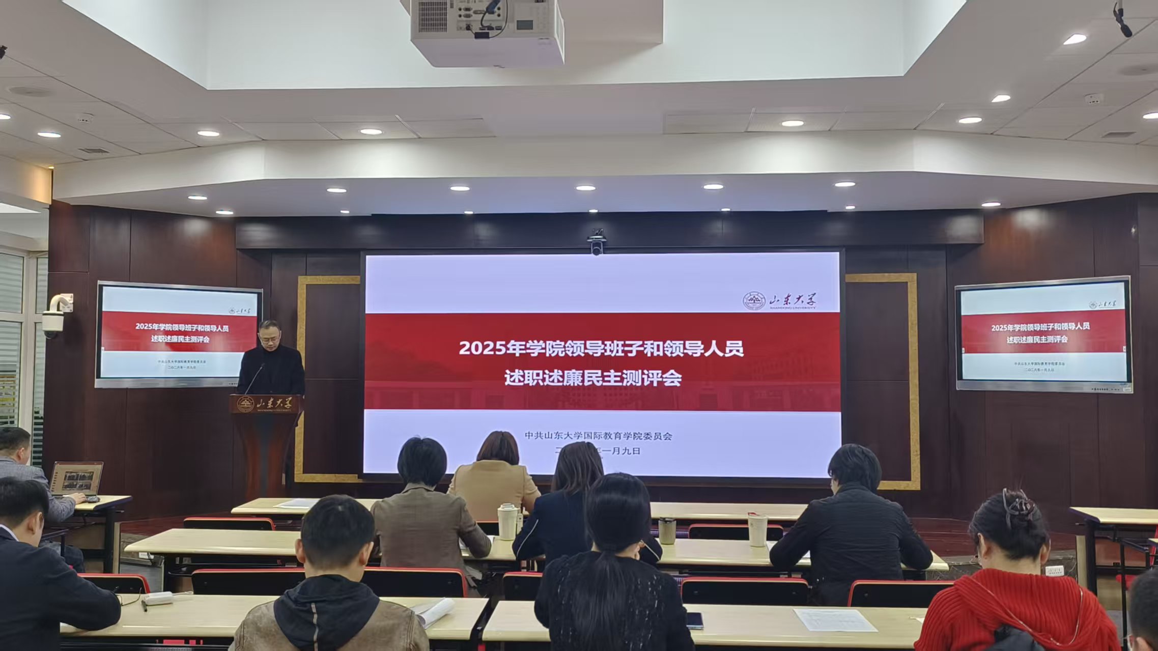 姬锐代表学院班子从党的建设、领导能力、工作实绩、安全稳定、党风廉政和作风建设等六个方面总结了2025年度学院整体工作和存在的问题,并提出下一年度工作思路和措施。他表示,学院统筹“国际教育、教师教育、教育高等研究”三院一体发展,先后取得了成功入选国家教师教育能力提升工程首批试点单位、国际中文教育专业跻身全国前三、获批联合国教科文组织“世界遗产青少年教育基地”等系列成果,学院发展水平创历史新高。学院班子将继续以党建为引领,深化理论武装,夯实组织基础,推动融合发展再上新台阶。