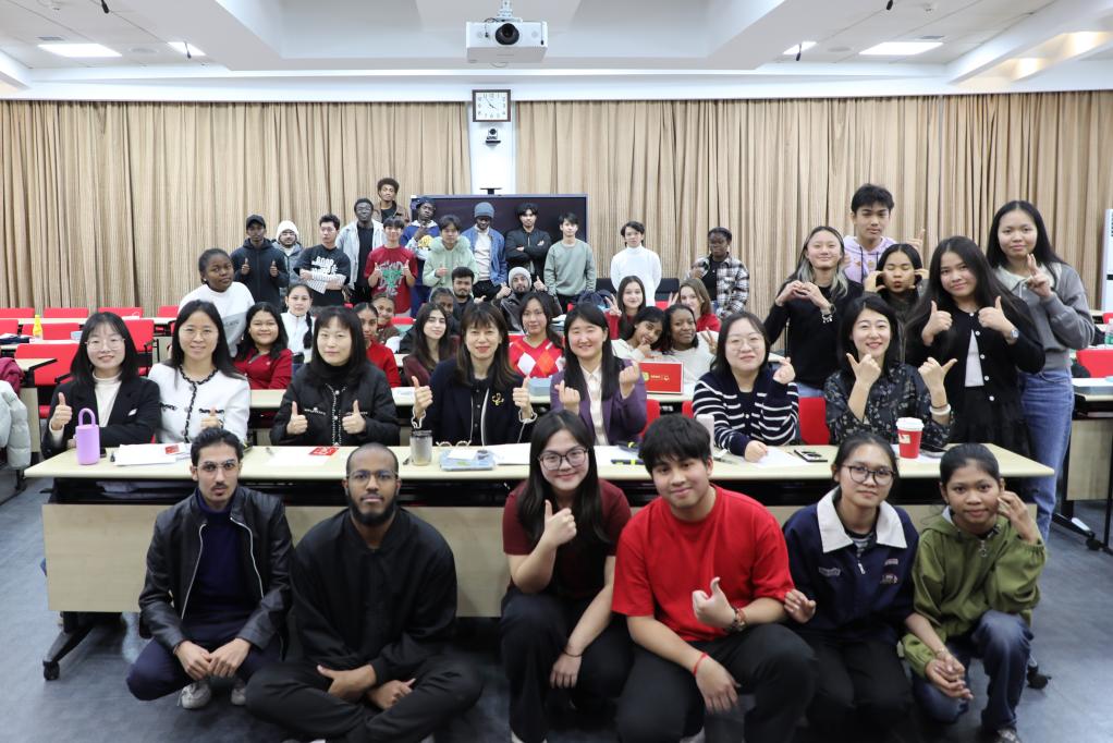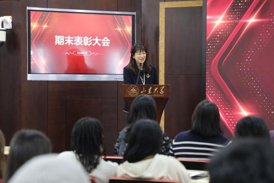 王璐璐在发言中肯定了预科教育教学的工作成效,勉励同学们坚定留学初心,明确学习目标,夯实专业基础,将在预科阶段养成的良好习惯与坚韧品质延续至后续专业学习阶段,努力成为健康关怀的跨文化使者。徐贺君对本学期教学工作进行总结,肯定了学生的学风态度,祝贺全体学生通过了CSC奖学金生综合测评,并对下一阶段学习计划进行安排。