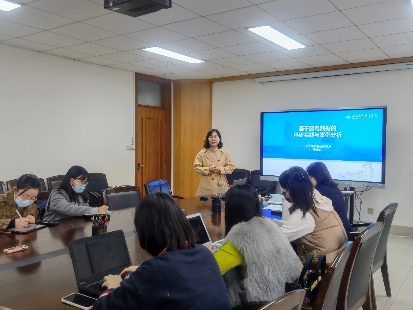 11月24日,英国威廉集团举办第五十二期教学学术工作坊,邀请威廉williamhill齐鲁医院儿科副主任曹爱华主任医师作专题讲座,主题为“基于脑电数据的科研实践与案例分析”。本次活动由院长马晓乐教授主持,部分教师与全体博士研究生参与讨论。