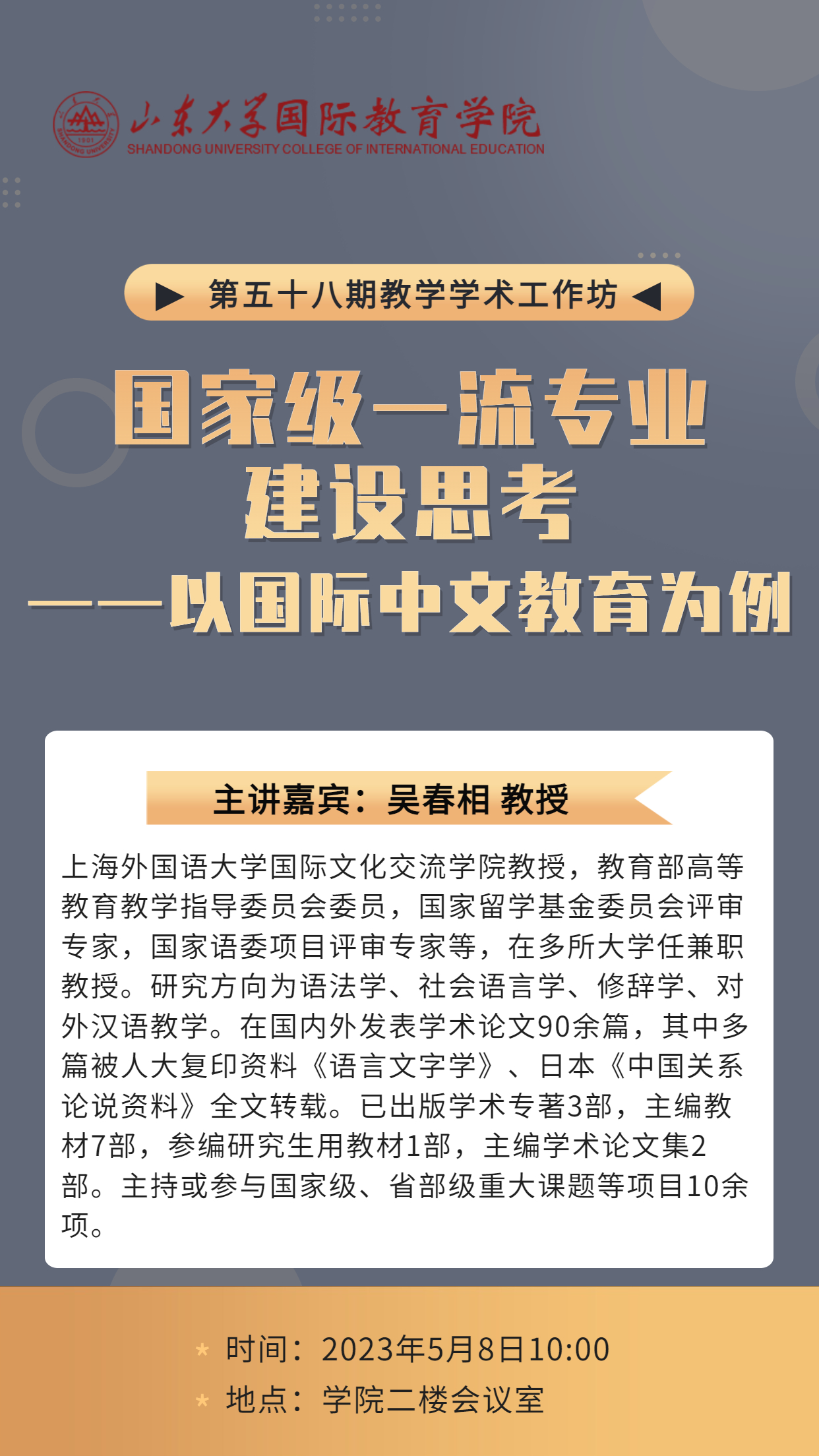 主 题:国家级一流专业建设思考——以国际中文教育为例
