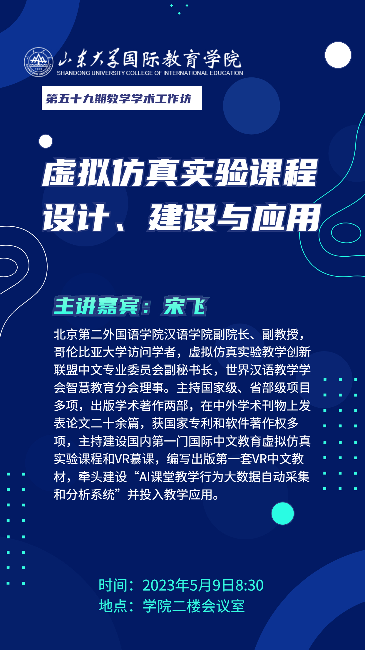 主讲人:宋飞,北京第二外国语学院汉语学院副院长、副教授,虚拟仿真实验教学创新联盟中文专业委员会副秘书长