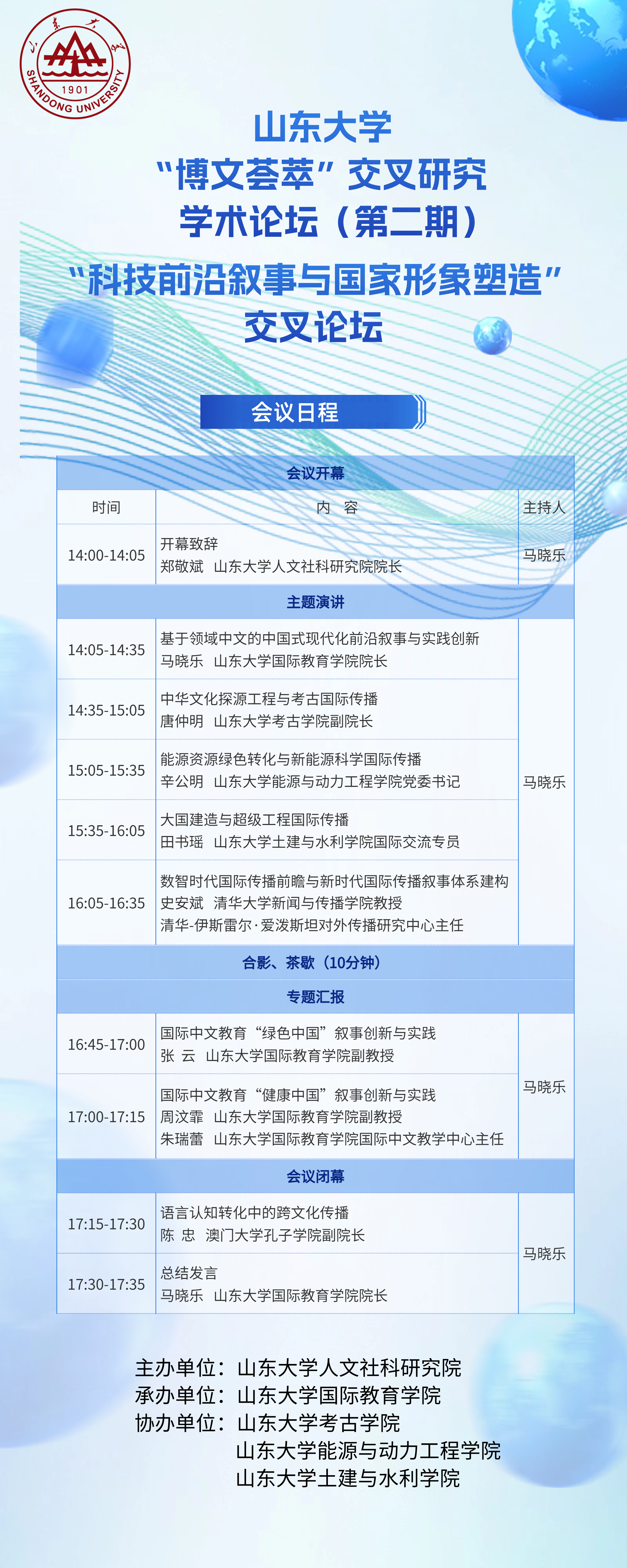 在此背景下,威廉williamhill拟于2024年4月12日举办“博文荟萃”交叉研究学术论坛(第二期):“科技前沿叙事与国家形象塑造”交叉论坛,共同探讨如何以国际中文教育为平台讲好中国科技故事,塑造新时代中国大国形象,以路径创新赋能新时代国际传播。相关事宜安排如下: